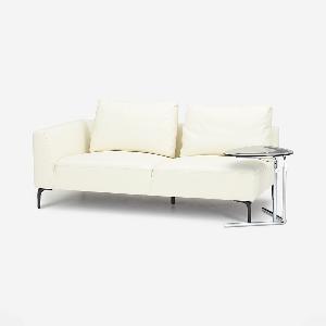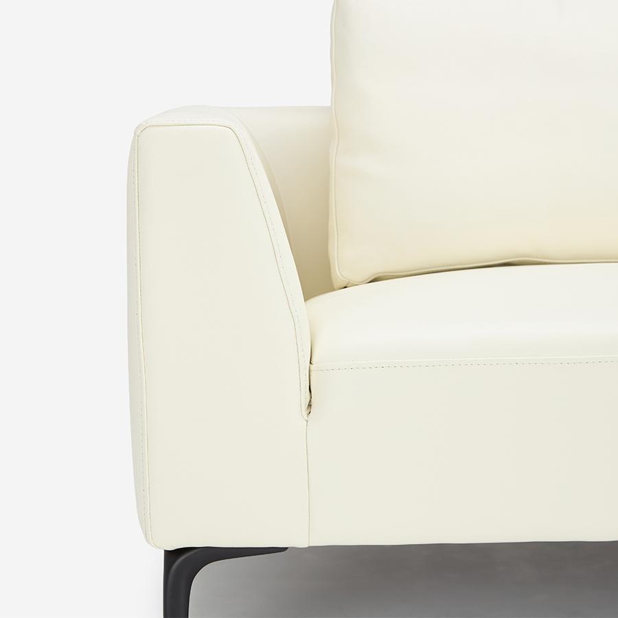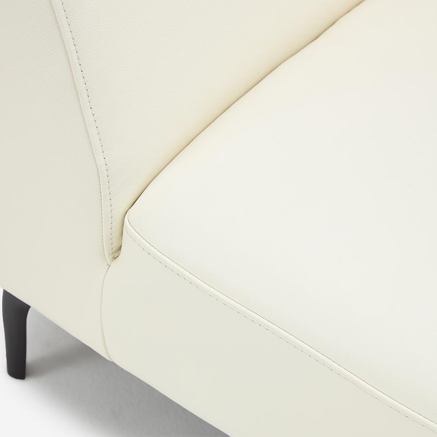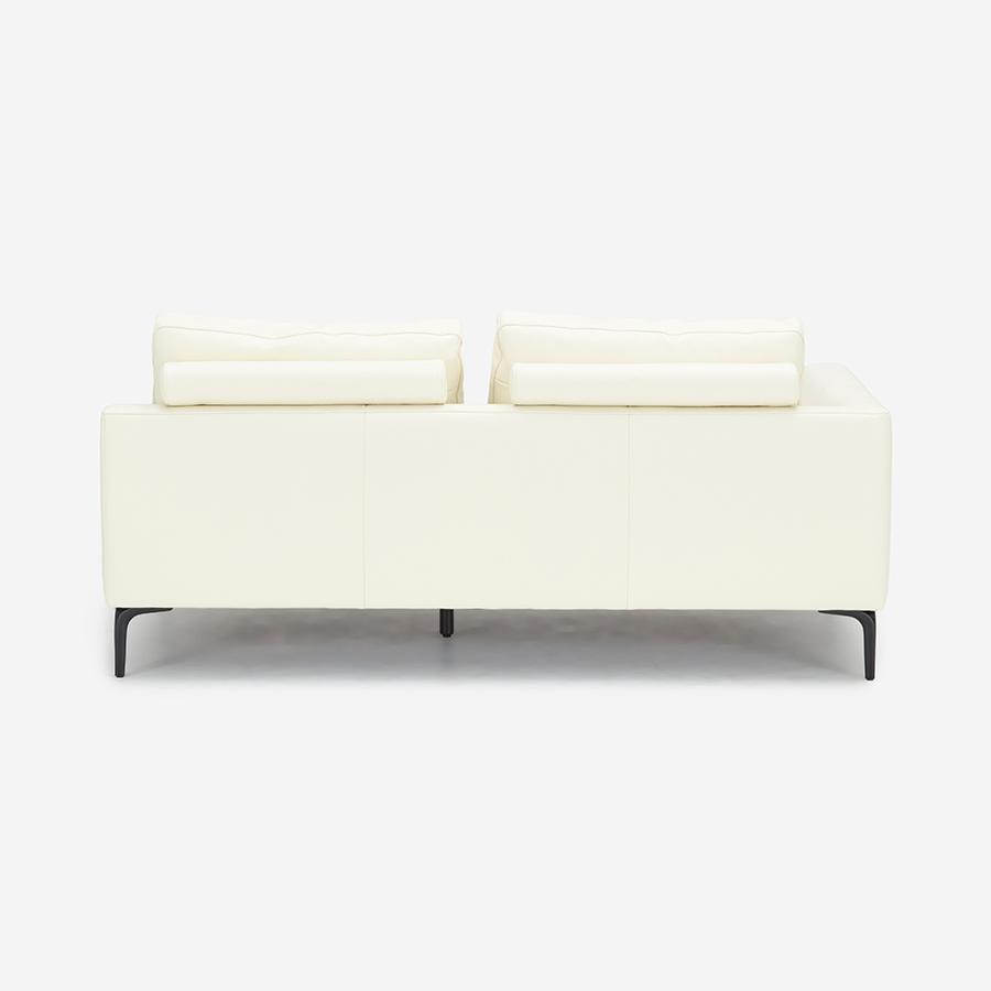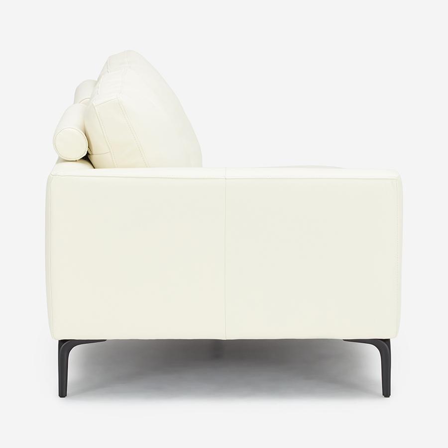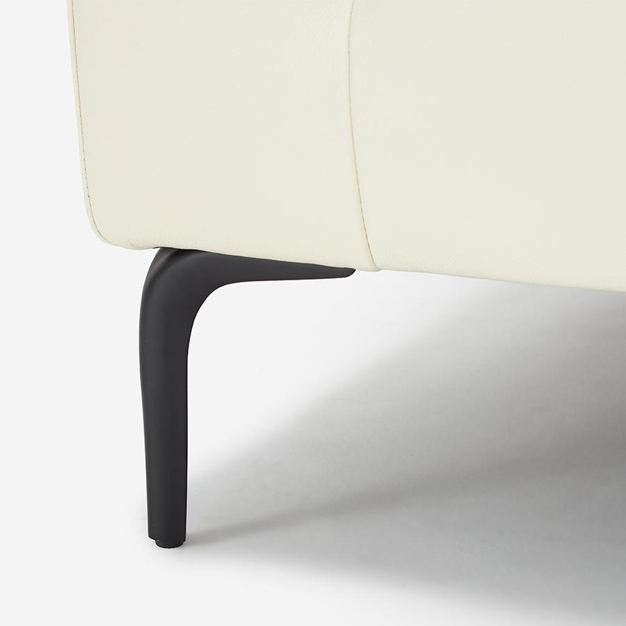 フレームと座面が一体化したフラットで美しいラインと、全体を引き締めるブラックのスチールレッグが、モダンで洗練された印象のすっきりとしたソファ。
