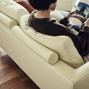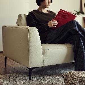 奥行きが広くフラットな座面は、深く腰掛けるのはもちろん、ベッドのように寝転がっても快適に過ごせます。高めのアームは、角に腰掛けた際の背もたれとしても心地よくフィットします。