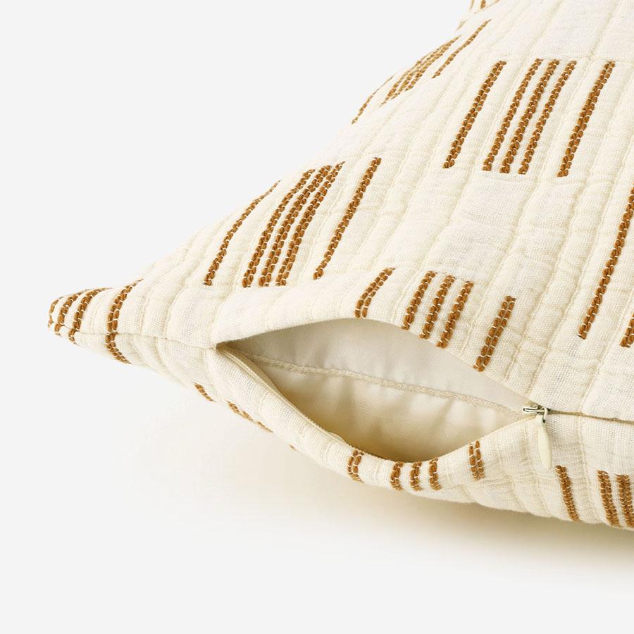 繊細な格子模様を立体的に織り上げたクッションカバー。