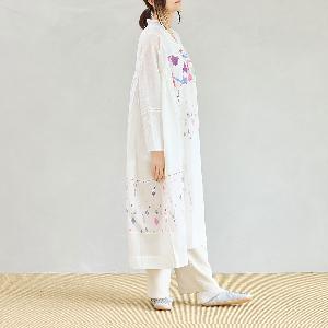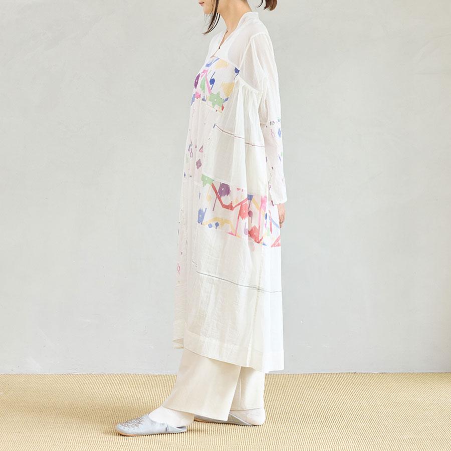 体を締め付けない、ゆったりとしたシルエットのルームドレス。