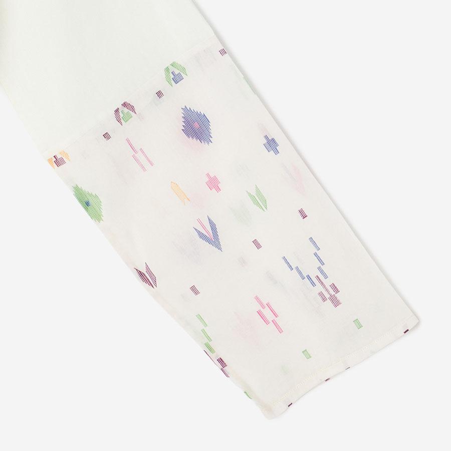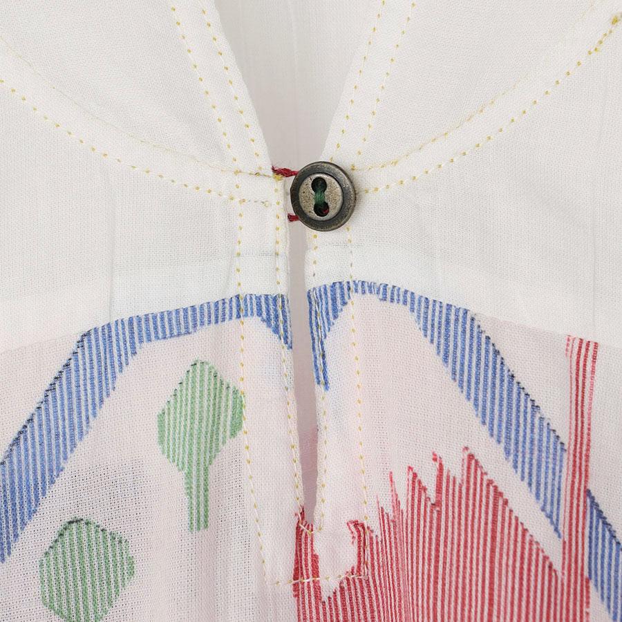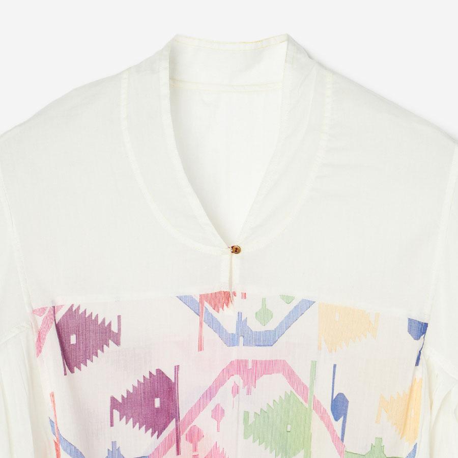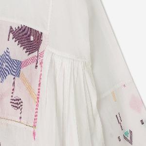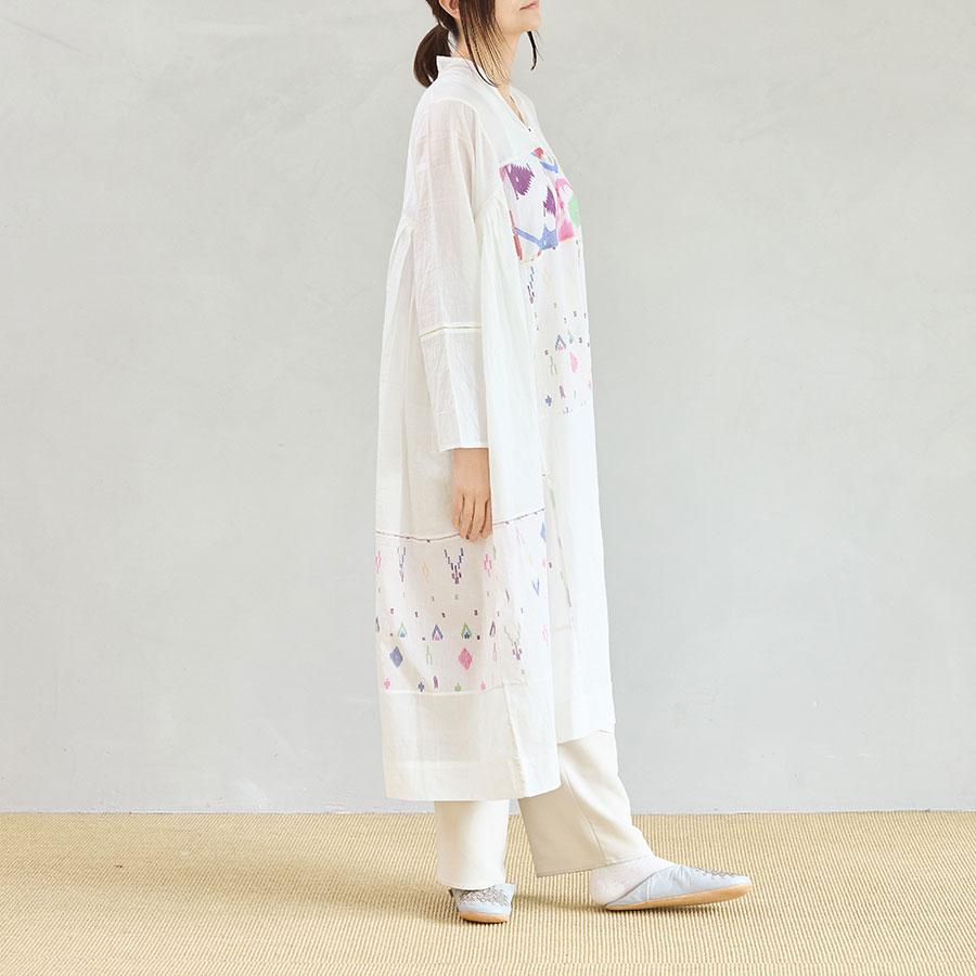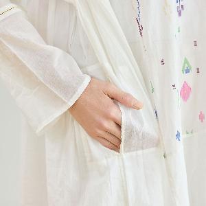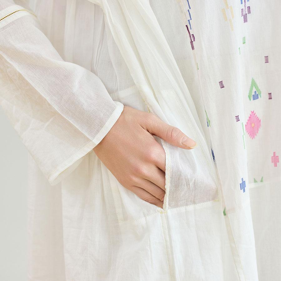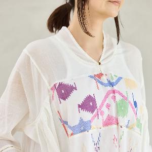 生地に豊かな表情を生み出すギャザーや、ほどよい「抜け感」を演出するこだわりのステッチワークなど、インドの手仕事ならではの温もりと洗練されたディテールが随所に光ります。