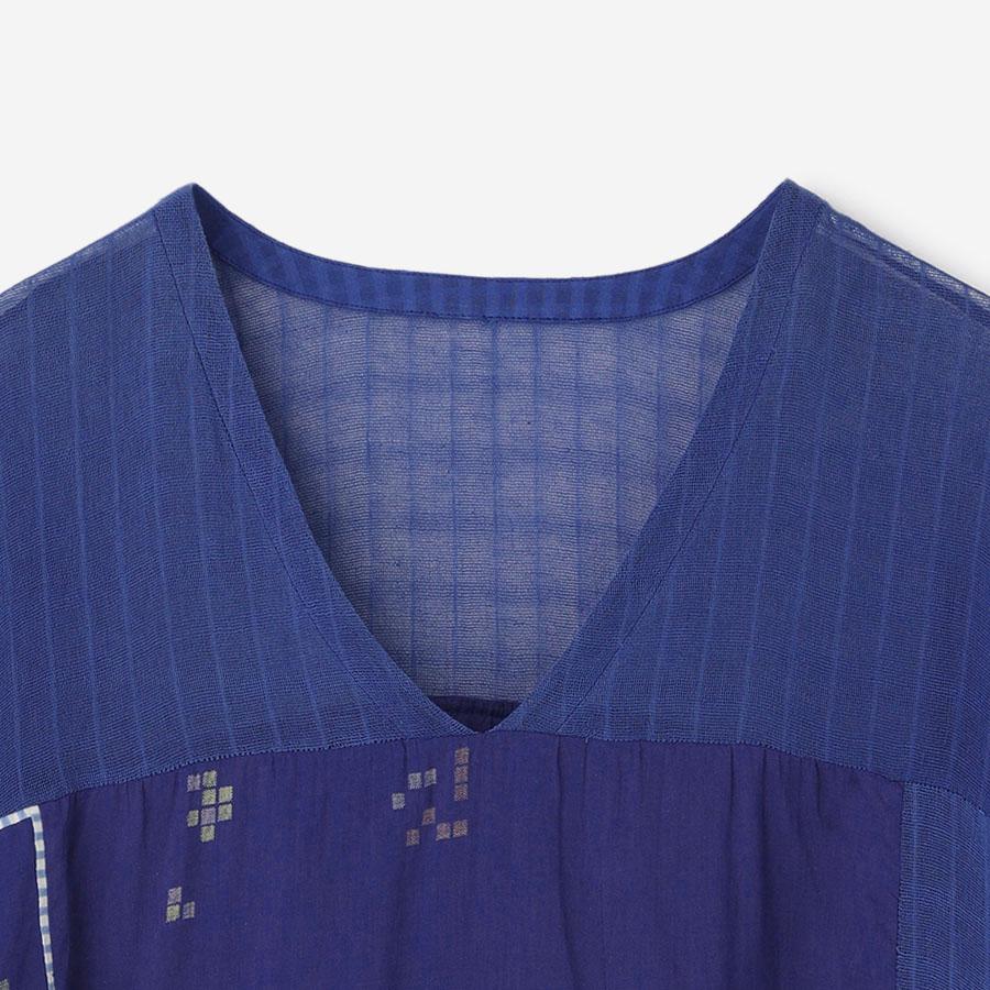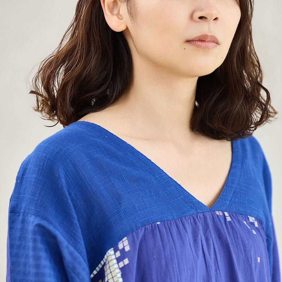 生地に豊かな表情を生み出すギャザーや、ほどよい「抜け感」を演出するこだわりのステッチワークなど、インドの手仕事ならではの温もりと洗練されたディテールが随所に光ります。