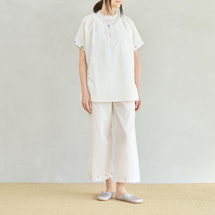 ほどよい「抜け感」を演出するこだわりのステッチワークなど、インドの手仕事ならではの温もりと洗練されたディテールが随所に光ります。