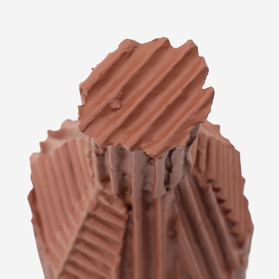 特殊な土と段ボールの型を使用し、すべて職人の手作業で制作されています。そのため、サイズ、形状、傾き、色の濃淡、表面のテクスチャーには個体差がございます。アートピースならではの個性・味わいとしてお楽しみください。