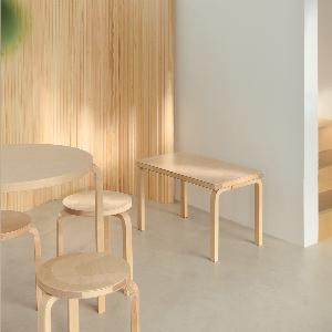 アルヴァ・アアルトが開発をした、フィンランドバーチ材を直角に曲げる技術「L - レッグ」を応用したシリーズのひとつでもあり、 現代においても豊富なカラーと仕様のバリエーションを揃えています。あらゆる環境に馴染むシンプルで普遍的なデザインは、今もなお、世界中で愛され続けています。