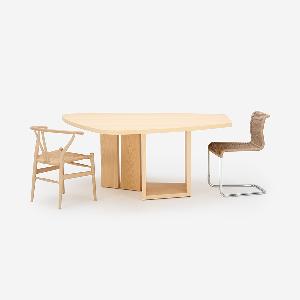 M21 テーブルの象徴でもある天板のデザインを継承し、建築的な美しさと落ち着いたシンプルな存在感をあわせ持つレッグを組み合わせました。レッグにはスリットが入っているため軽やかな印象です。バウハウスのモダニズム精神と造形哲学を今に伝えながらも、これからの時代のスタンダードとなることを願って作られました。