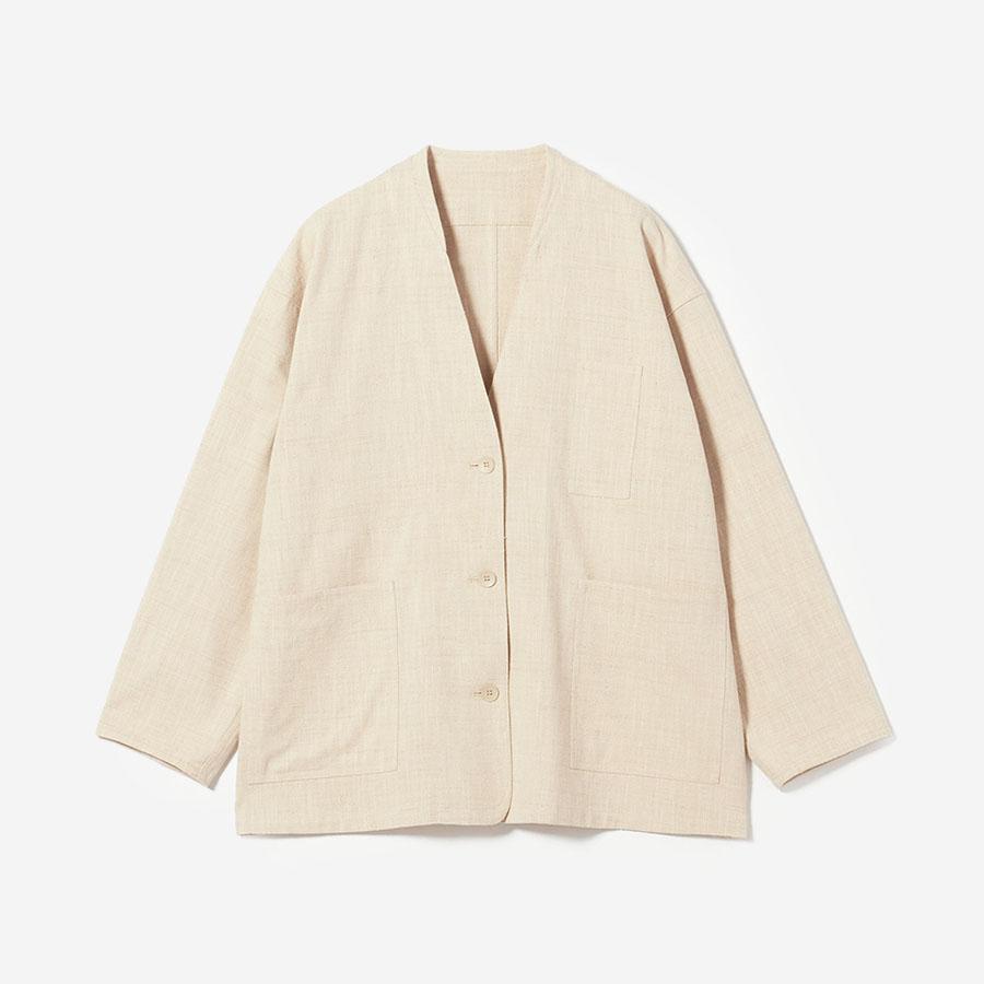 シワが気になりにくく、カーディガン感覚でラフに羽織れる軽やかなジャケットです。