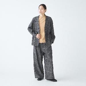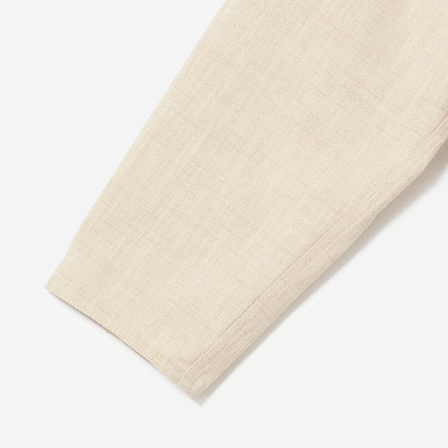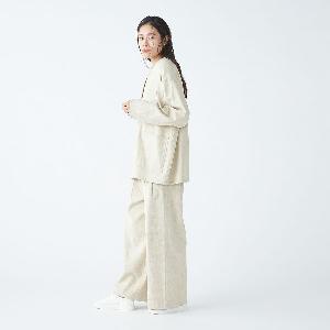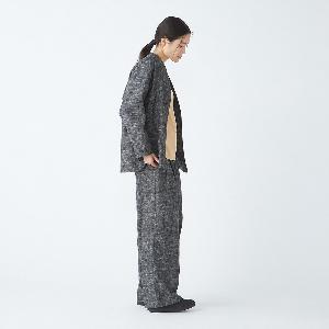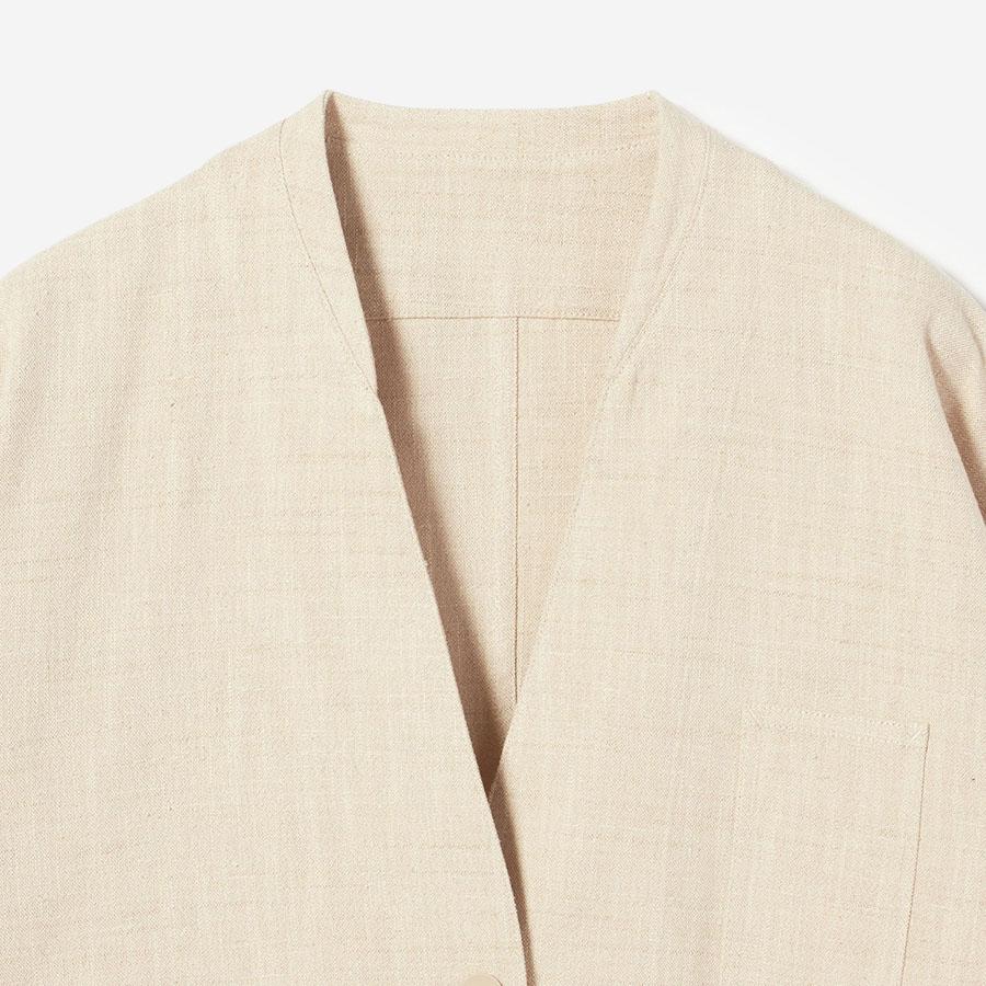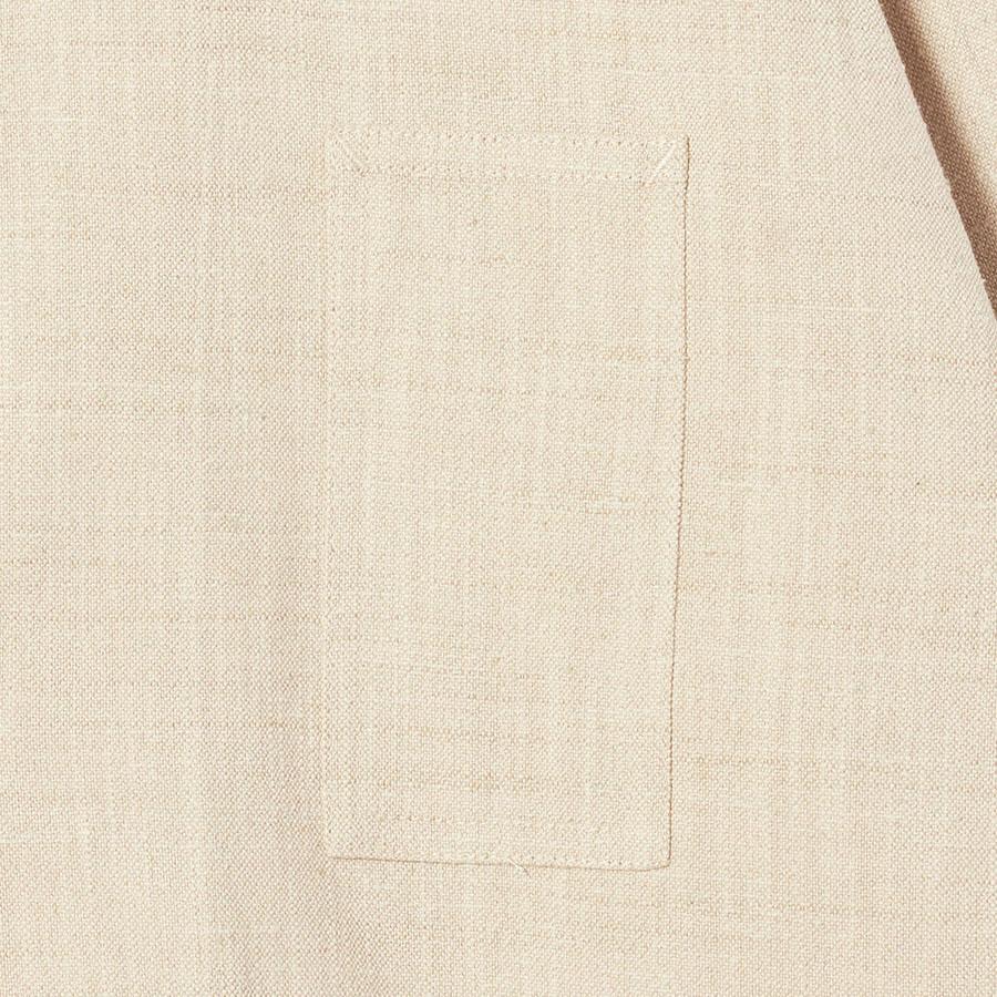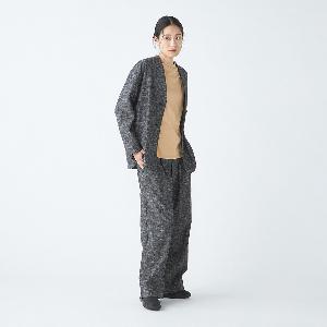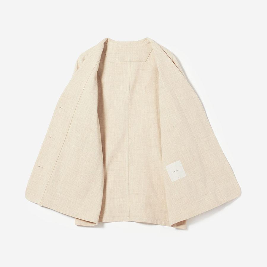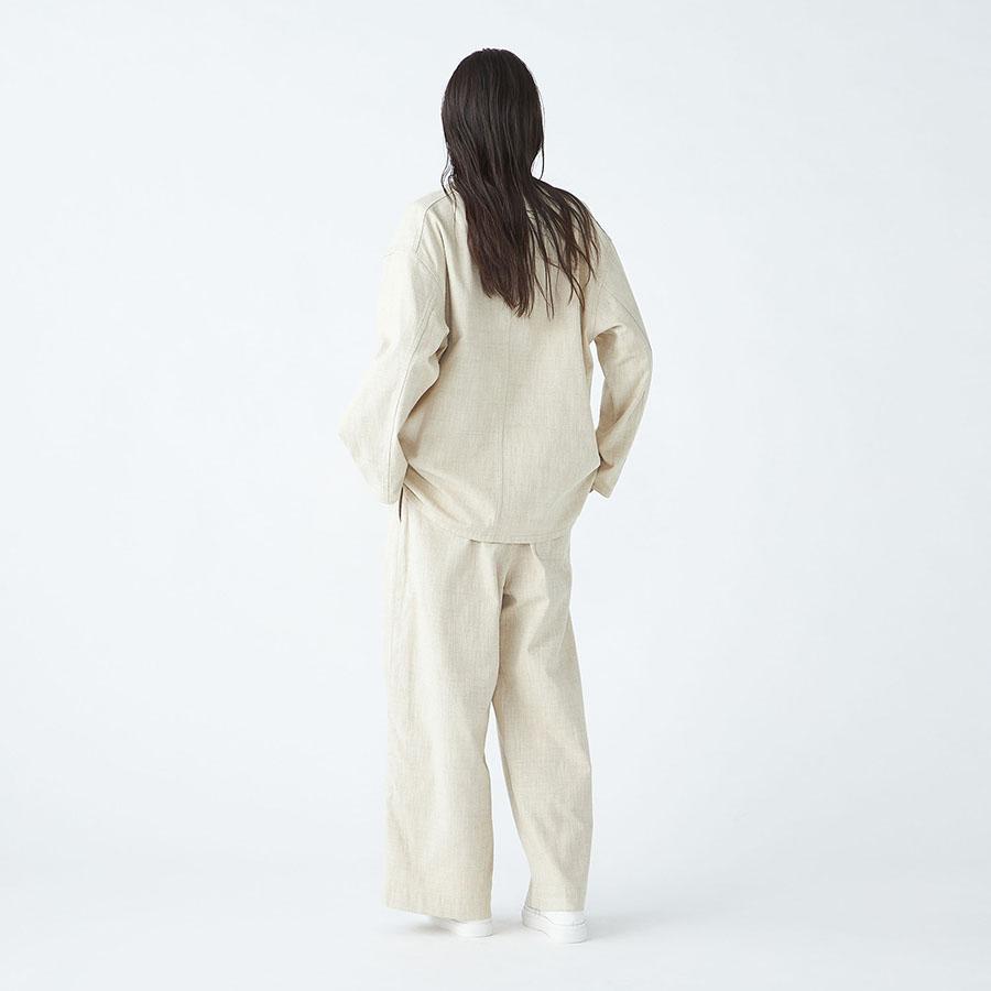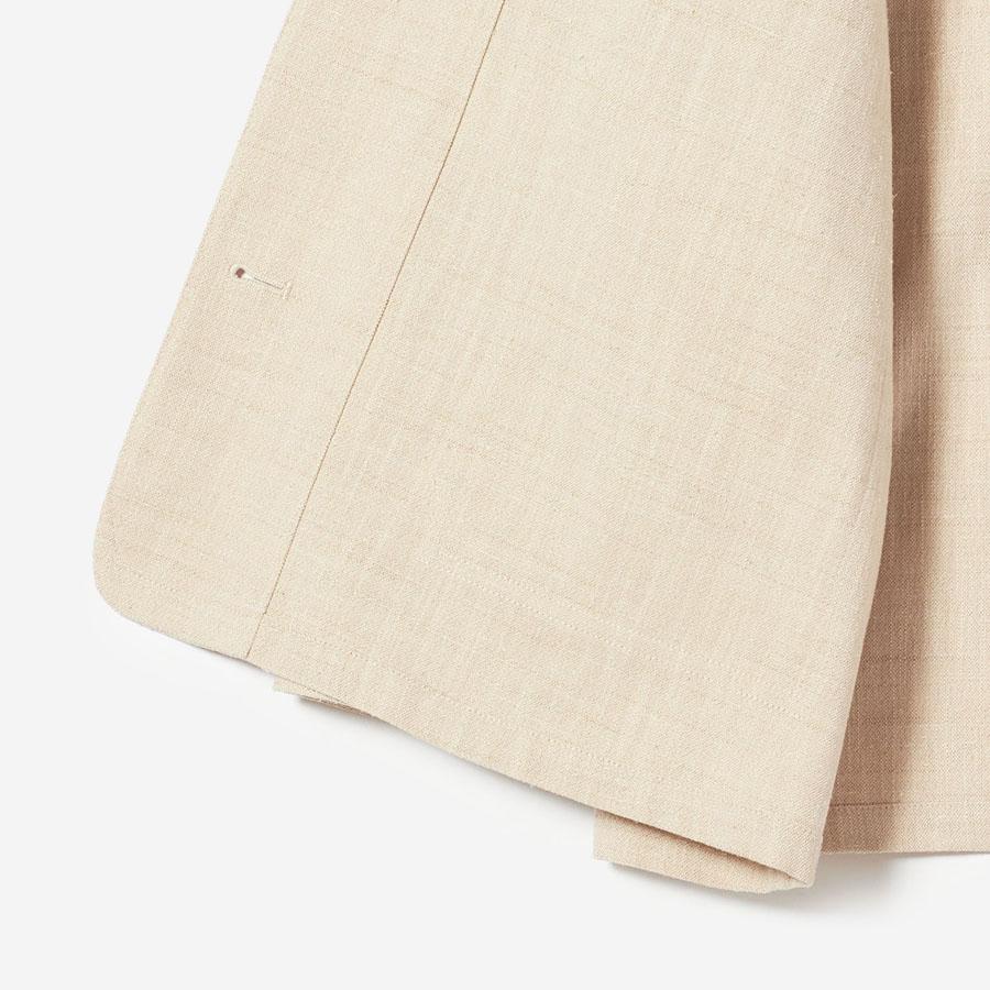 レーヨンとシルクの混紡糸を合わせたスラブネップツイード生地を使用 。シルクのネップ(糸の節)が作り出す独特の表面感と、スラブ糸によるふっくらとした表情が、上品でありながらもリラクシーな雰囲気を醸し出します。