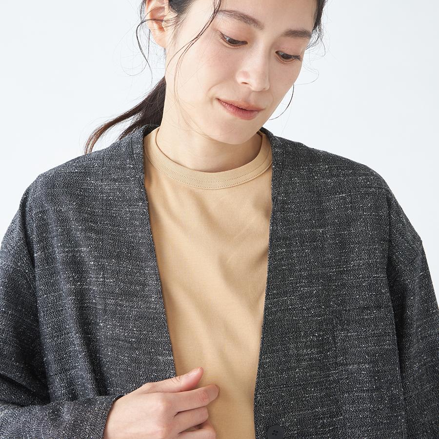 シワが気になりにくく、カーディガン感覚でラフに羽織れる軽やかなジャケットです。