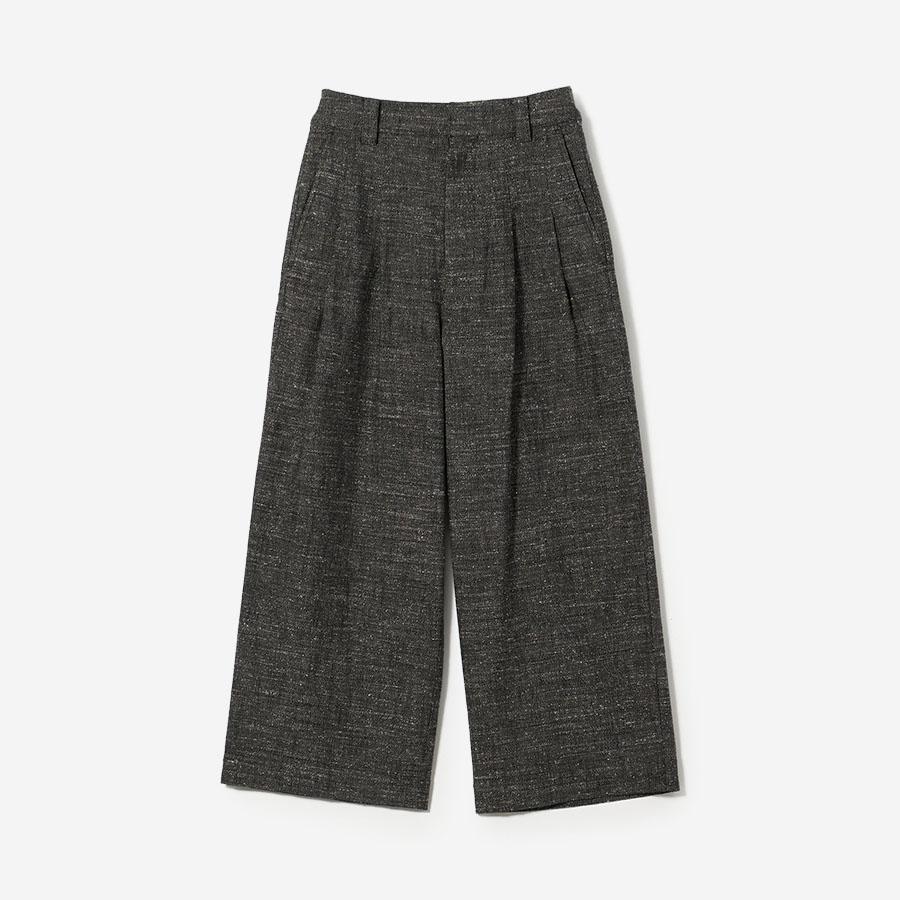 ワイドなボリューム感を持たせつつ、ウエスト部分にタックを入れることで立体的なシルエットを構築。ウエストやヒップ周りのラインを拾わず、すっきりと綺麗にご着用いただけます。
