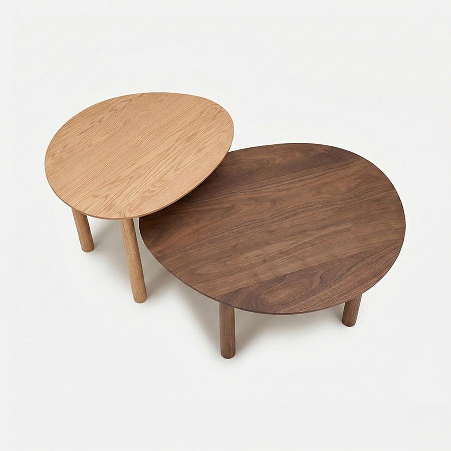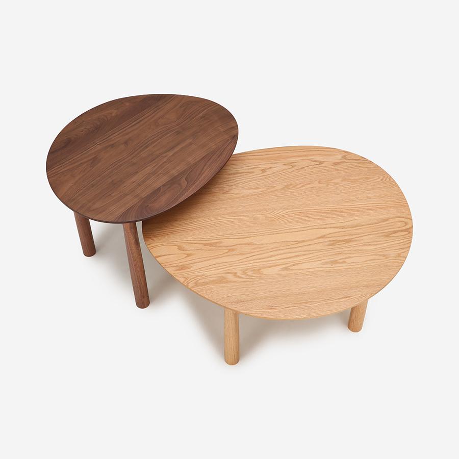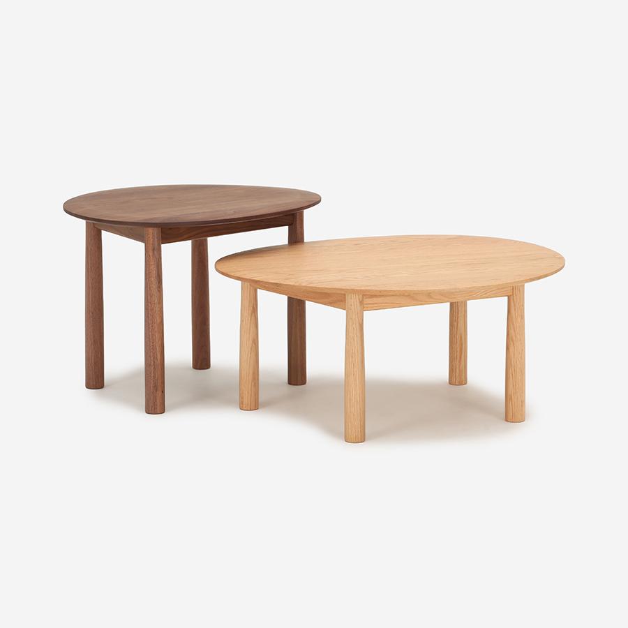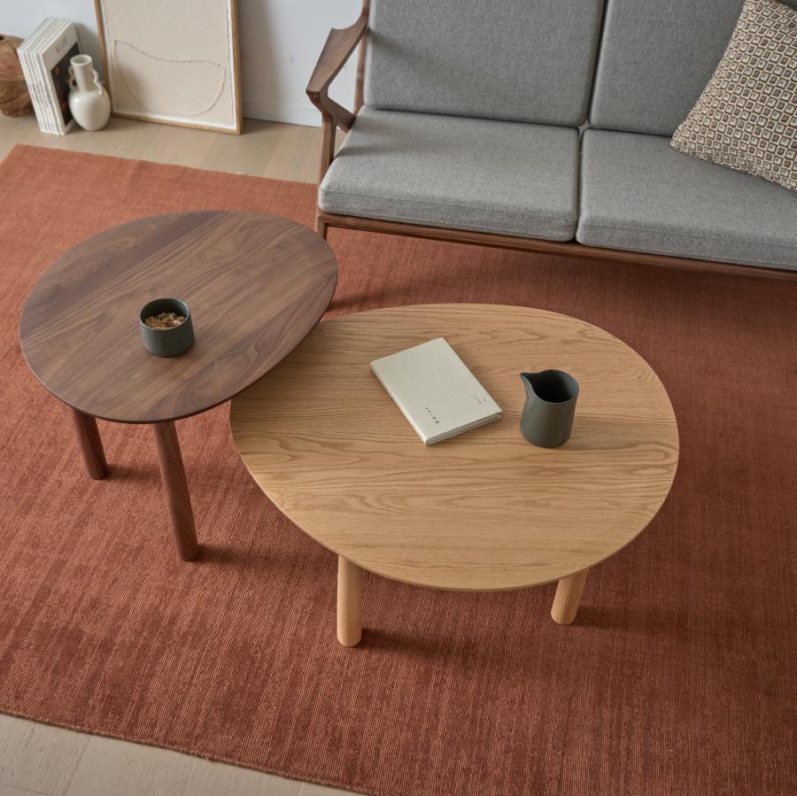 ゆるやかな楕円形のかたちと、木目を生かした無垢の質感が特徴のRIVERSIDE(リバーサイド)リビングテーブル。