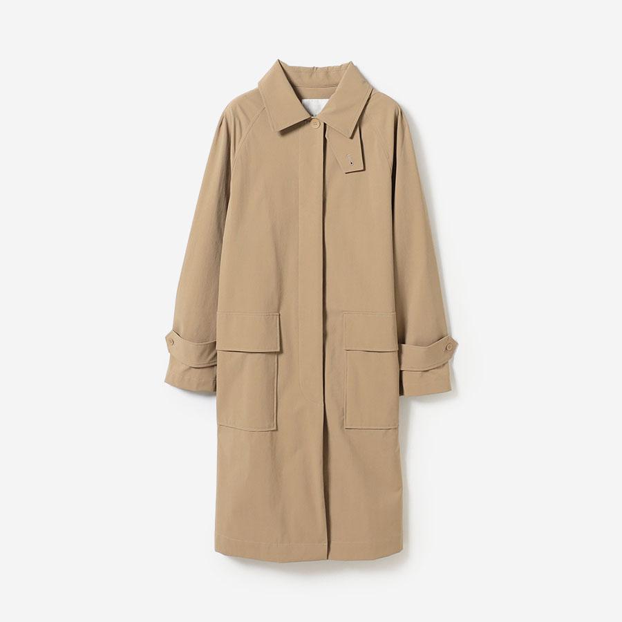 裾に向かって広がる美しいテントラインのシルエットが特徴の、シンプルなスプリングコートです 。