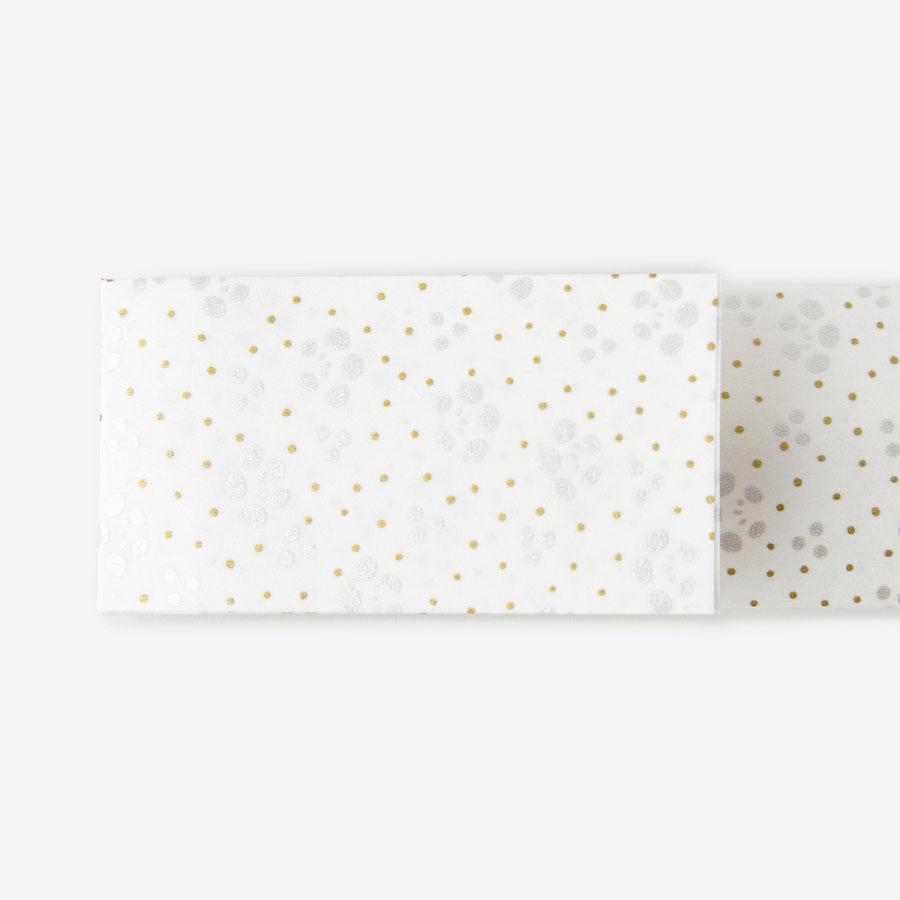 温かみのある美濃和紙に、伝統的な梅の小紋柄がキラキラ輝くインクで1枚1枚丁寧に仕上げられています。