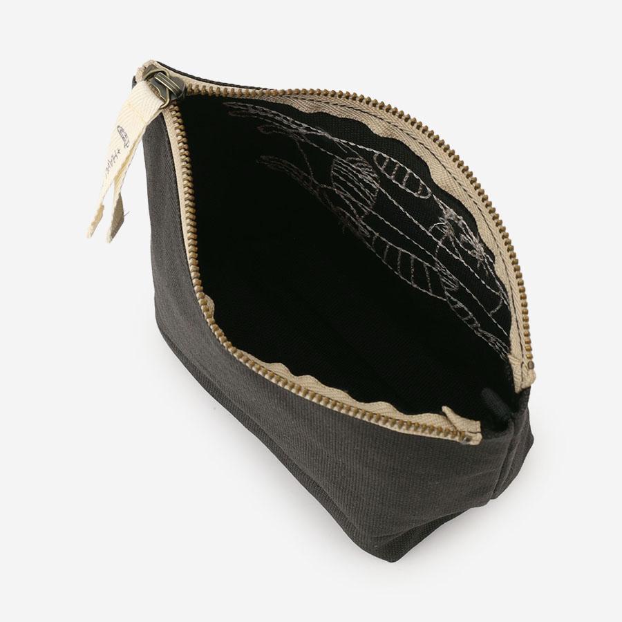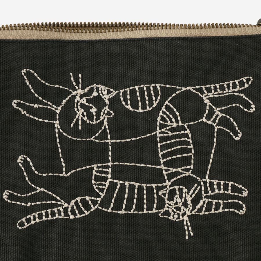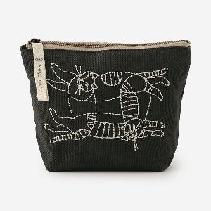 コスメポーチとしてはもちろん、充電器などのガジェット類や、ステーショナリー入れとしても活躍します。 刺繍ならではの糸の凹凸感が、ワイヤーアートの立体感を表現しています。
