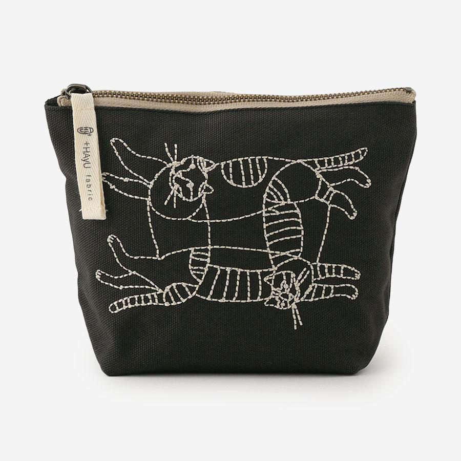 ワイヤーアーティスト・小川学さんが手がけるブランド「+HAyU fabric(ハユファブリック)」のアートワークを落とし込んだ、デイリー使いにぴったりなポーチ。