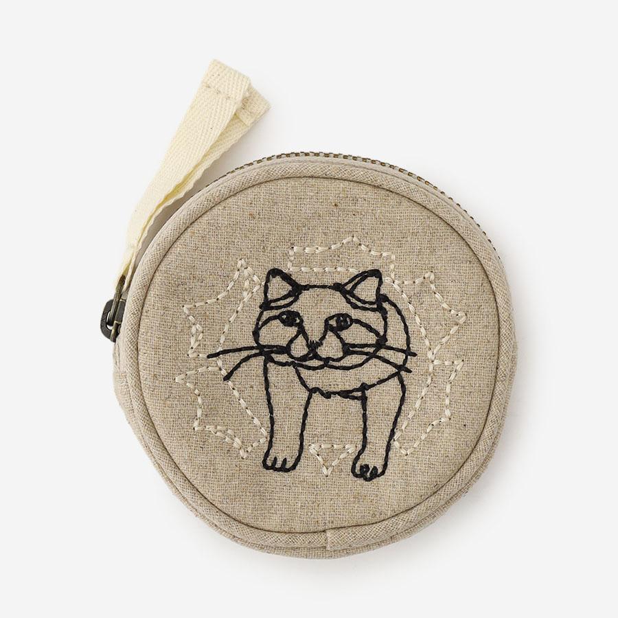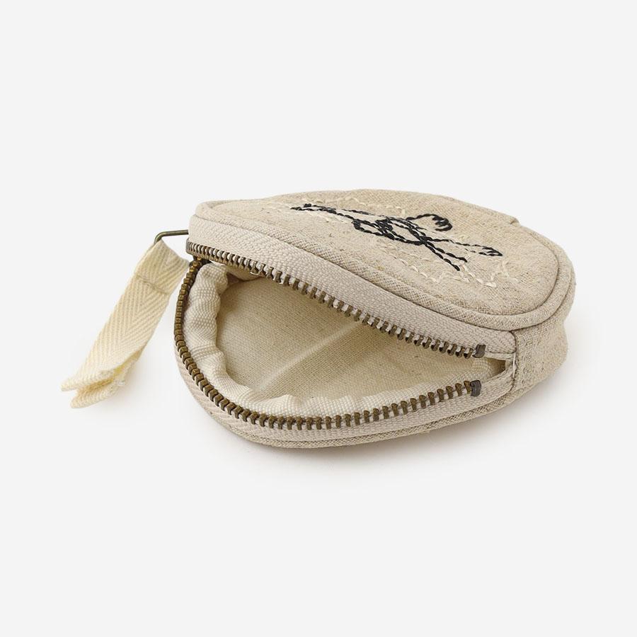 ワイヤーアーティスト・小川学さんが手がけるブランド「+HAyU fabric(ハユファブリック)」のアートワークを落とし込んだ、直径8cmの丸型ポーチ。