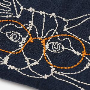 ワイヤーアーティスト・小川学さんが手がけるブランド「+HAyU fabric(ハユファブリック)」のアートワークを落とし込んだ、布製のメガネケース。