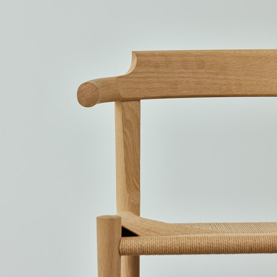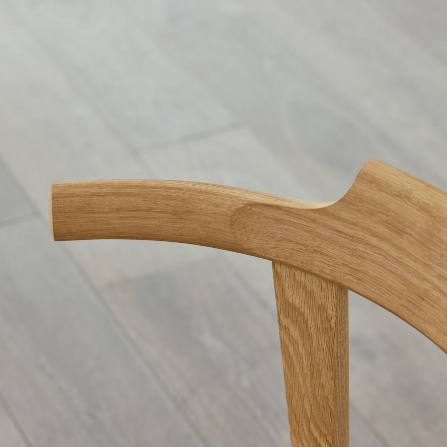 特徴的な背もたれは、1本の無垢材を蒸気で曲げる高度な「曲げ木」の技術で作られています。