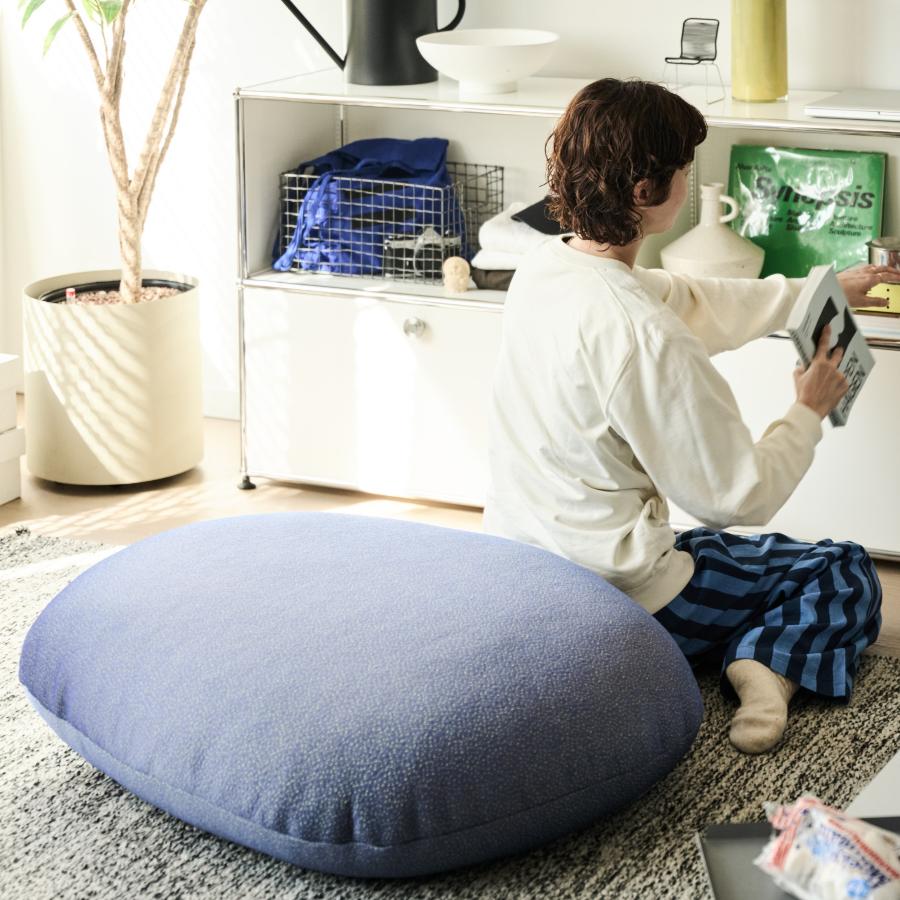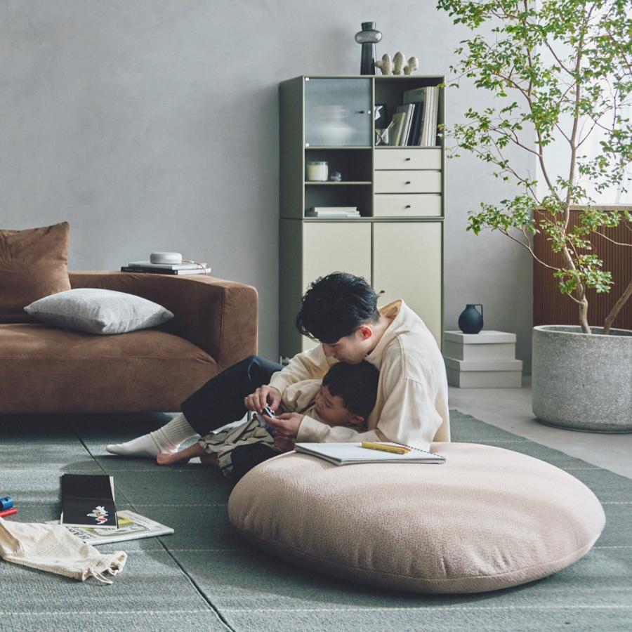 BUFFIに座ってソファにゆったりと寄りかかれば、いつもの床座スタイルも、よりリラックスして過ごせます。