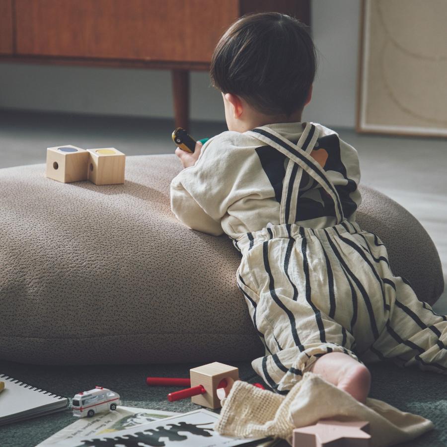 カバーには伸縮性の高いニットファブリックを採用し、あらゆる角度からそのクッション性を心地よく味わうことができます。