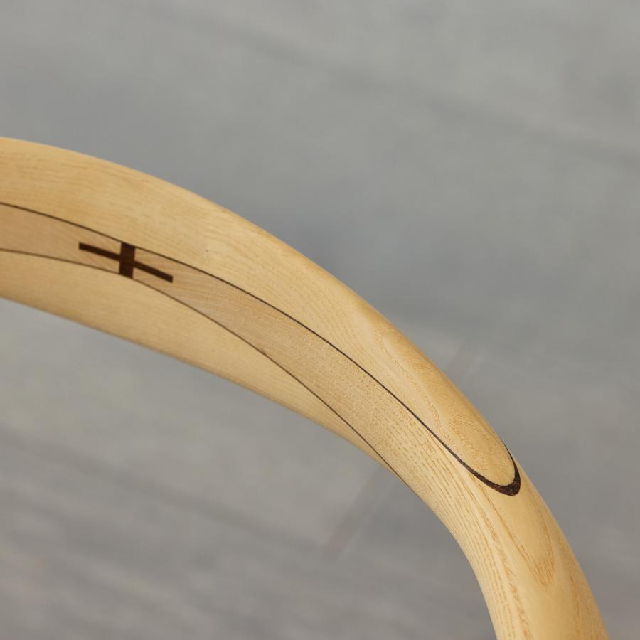 背もたれは4つの無垢材を中央部の十字型のジョイントで合わせた構造です。
