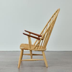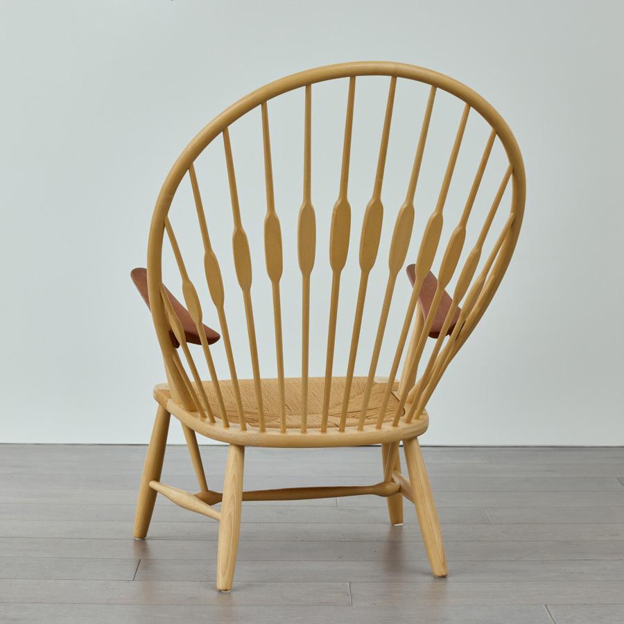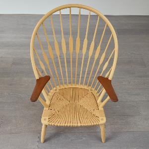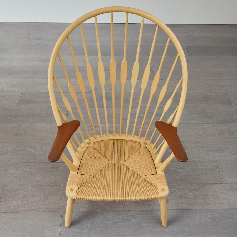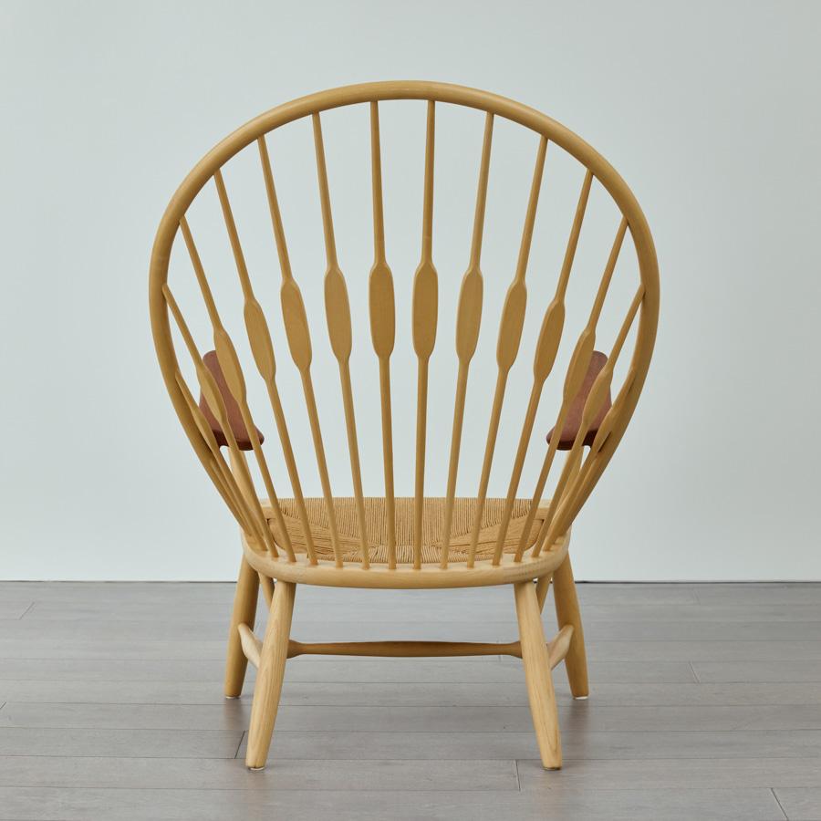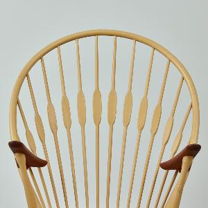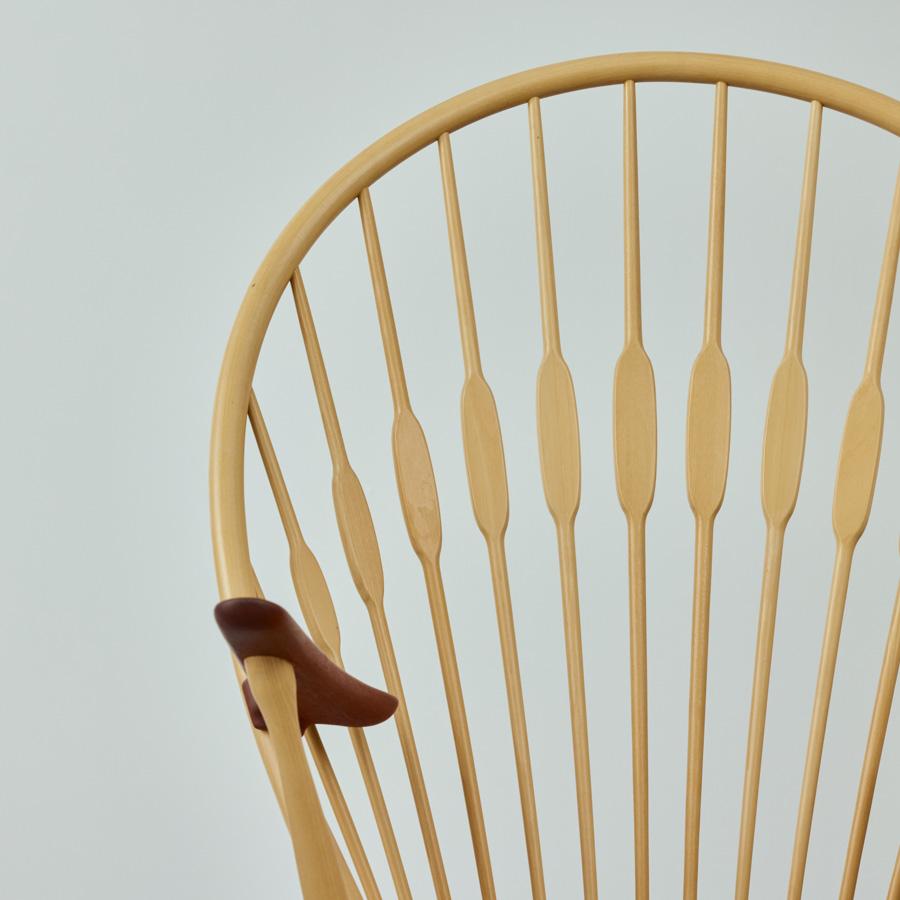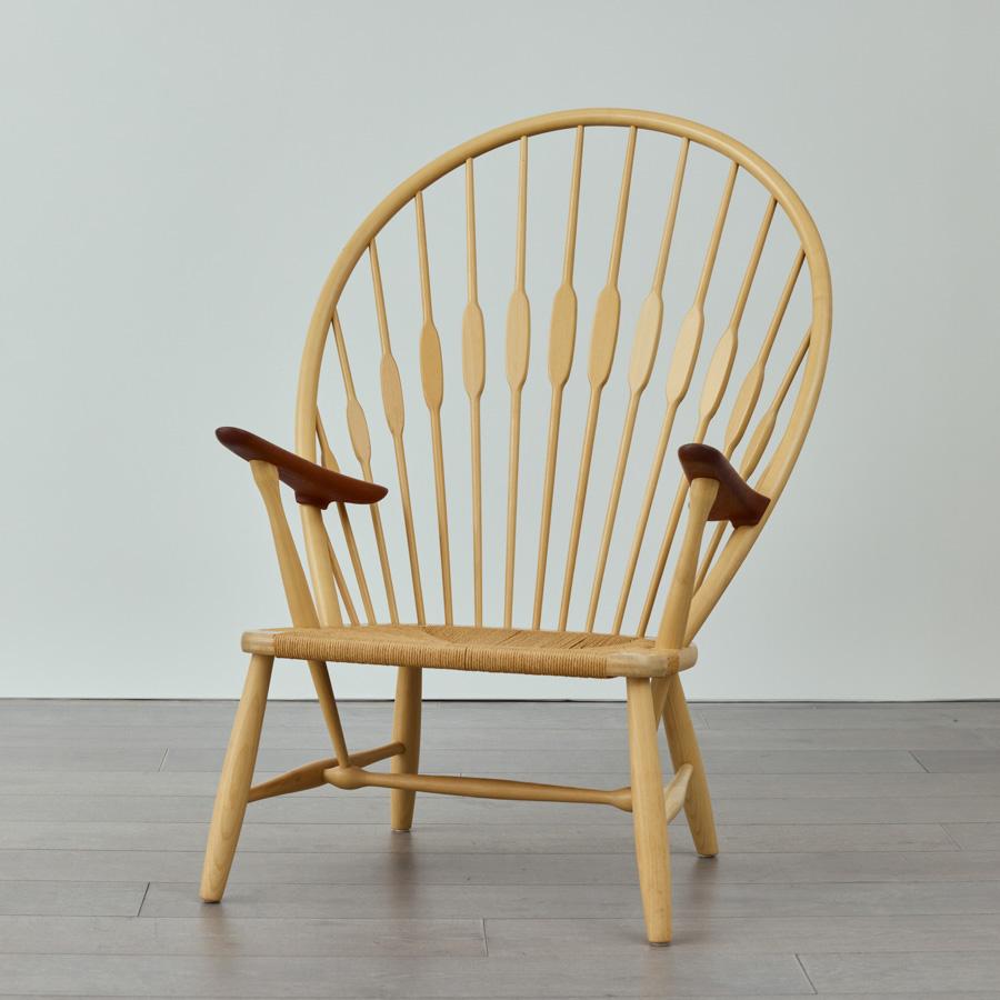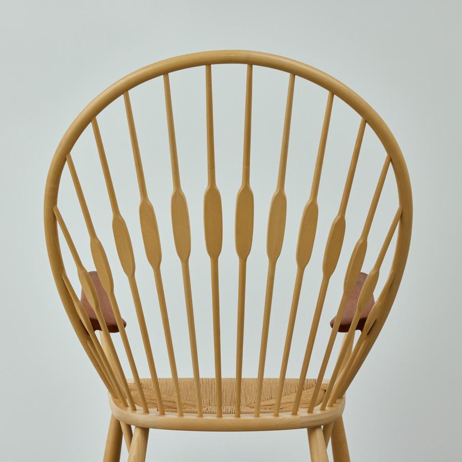 まるで孔雀(ピーコック)が羽を広げたような背もたれの造形。 そのあまりの美しさに、同じくデンマークの巨匠フィン・ユールが「ピーコックチェア」と名付けたという逸話が存在します。