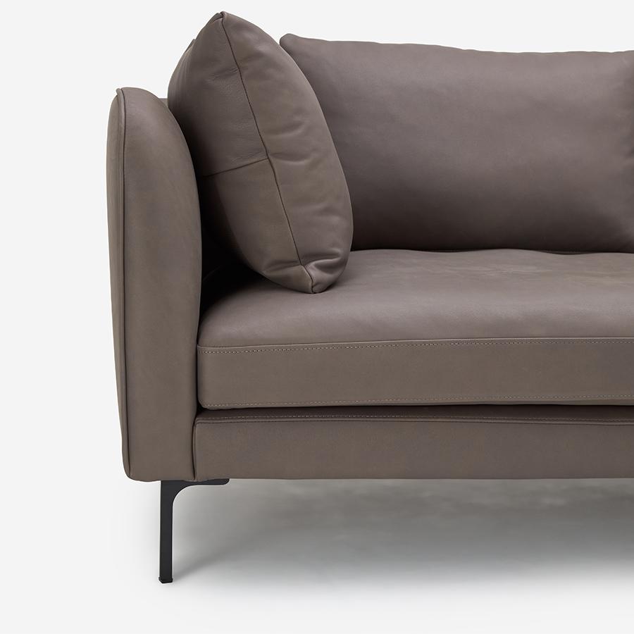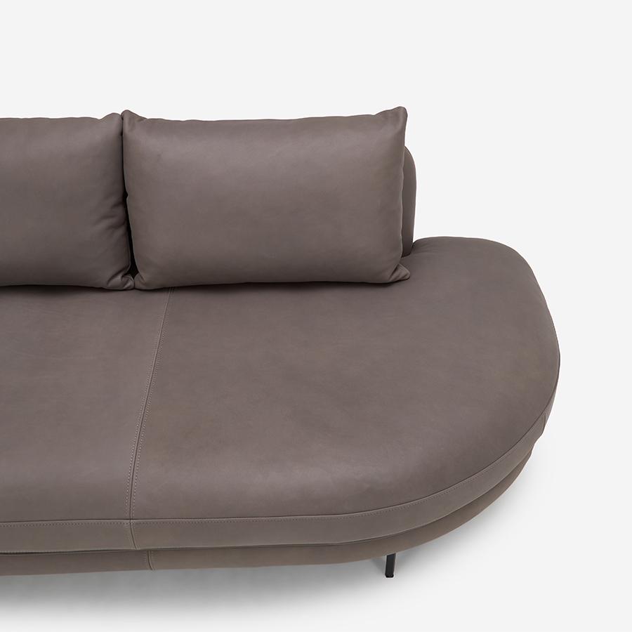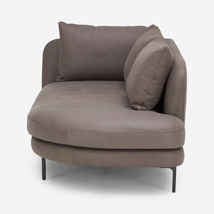 • ゆるやかなカーブを描くアームレスの座面は、座り方の自由度を広げるデザインです。張地:F-9089 脚:ブラック 幅188cm 左側アーム