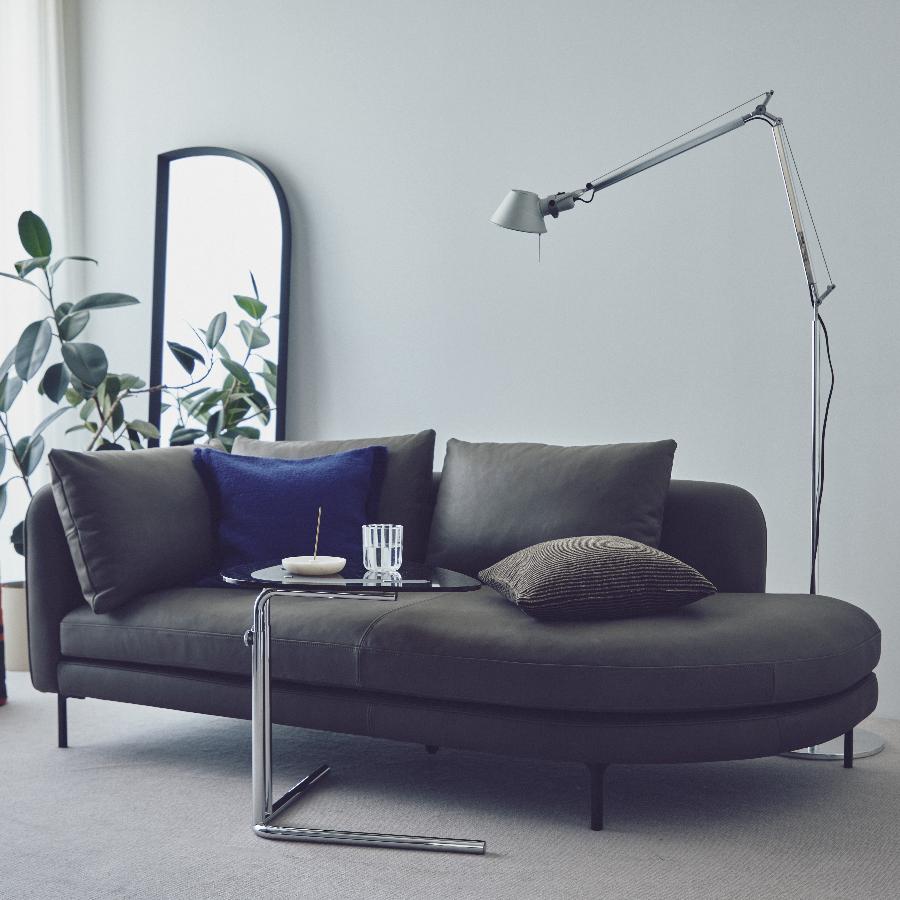 • お部屋の中心に置いて空間をやさしく仕切ったり、ダイニングとリビングをつなぐという役割も果たします。張地:F-9089 脚:ブラック 幅188cm 左側アーム