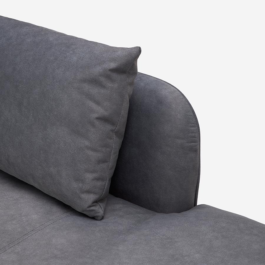 • 大きな横長クッションは腰当てや肘置き、心地よい枕としても使用できます。張地:F-9089 脚:ブラック 幅188cm 左側アーム