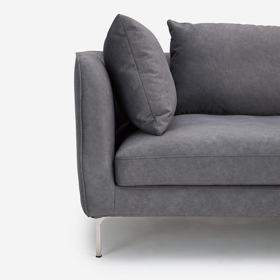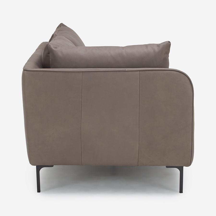 • 座面クッションが分割されていない「ワンシート構造」のため、座る場所に制約がありません。張地:F-9089 脚:ブラック 幅188cm 左側アーム