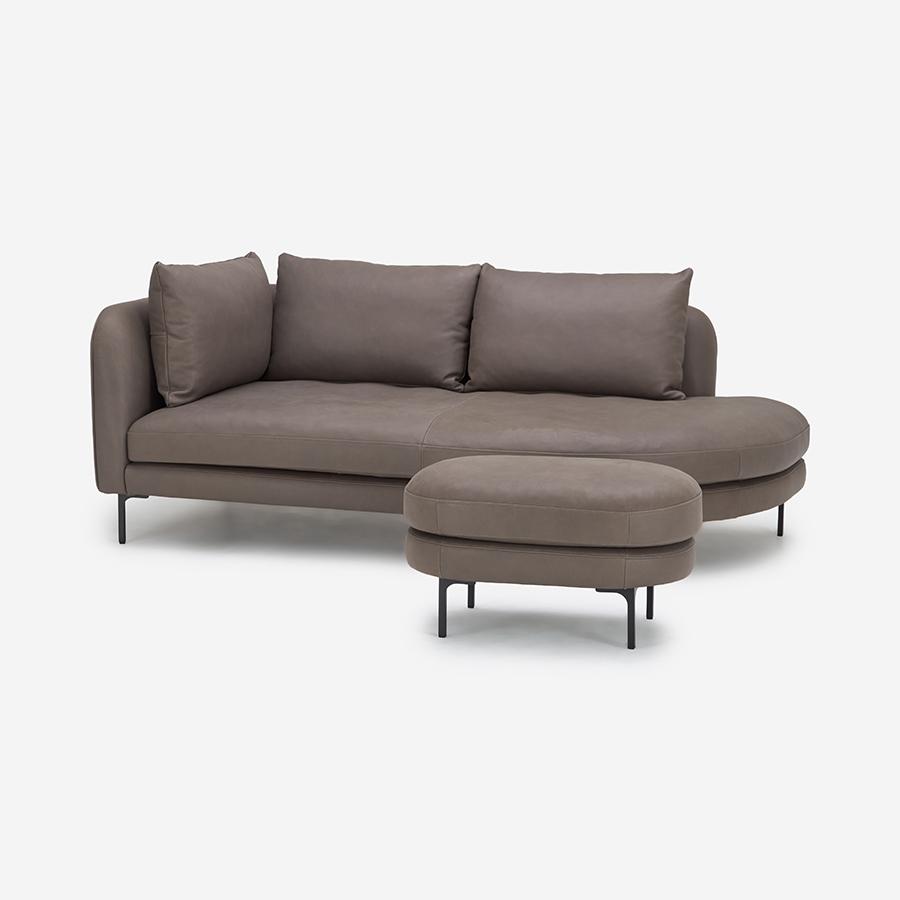 別売りのオットマンを組み合わせることで、来客時のスツールとして活用したり、足を伸ばしてくつろいだりと、暮らしに合わせた使い方が広がります。