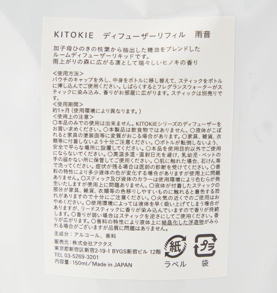 TOP > 雑貨 > フレグランス > リフィル > KITOKIE | ルームディフューザー リフィル 雨音 150ml