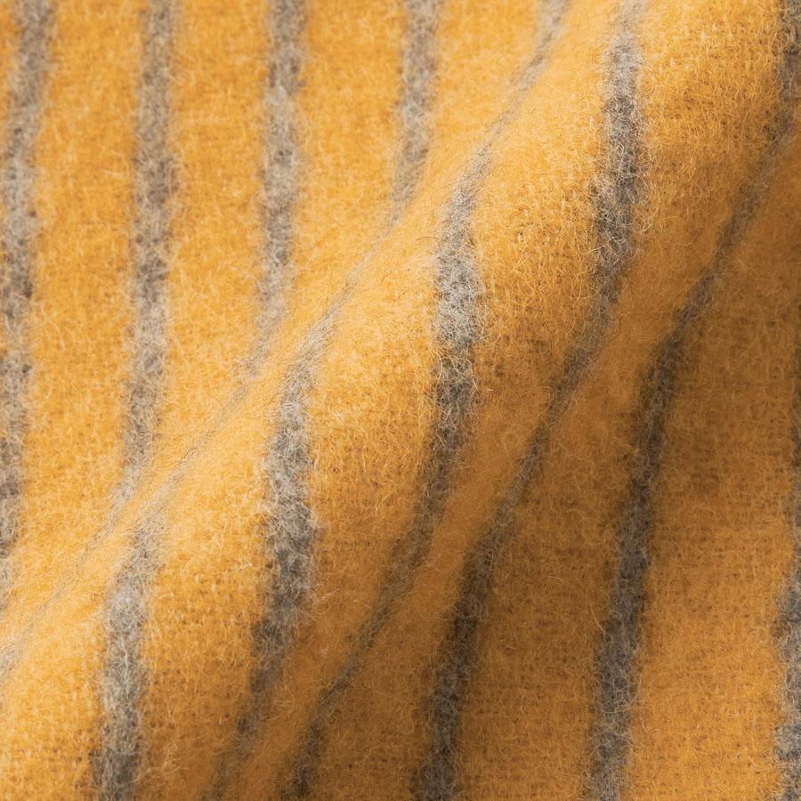 100%ウールのテキスタイルで、緯糸には独自の糸を使用しています。この糸は、フィンランドの地元農場から仕入れたフィンシープおよびフィンシープ交雑種の羊毛繊維、さらに認証を受けた Wool Integrity NZ の繊維から紡がれています。経糸には認証を受けた南米産ウール繊維を使用。すべての糸はEU圏内で紡績・染色されており、ミュールシングフリーのウールです。