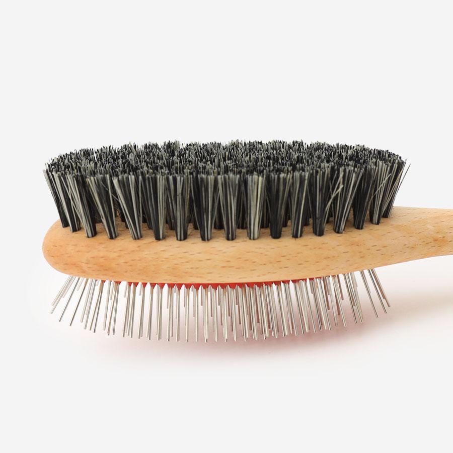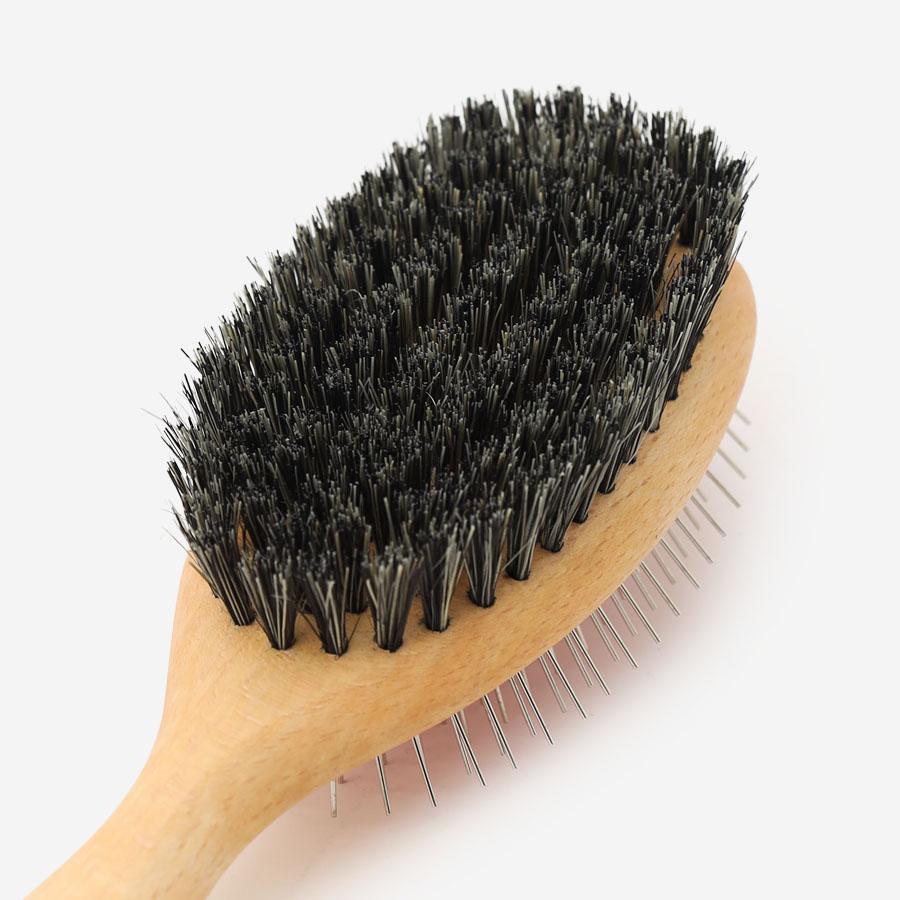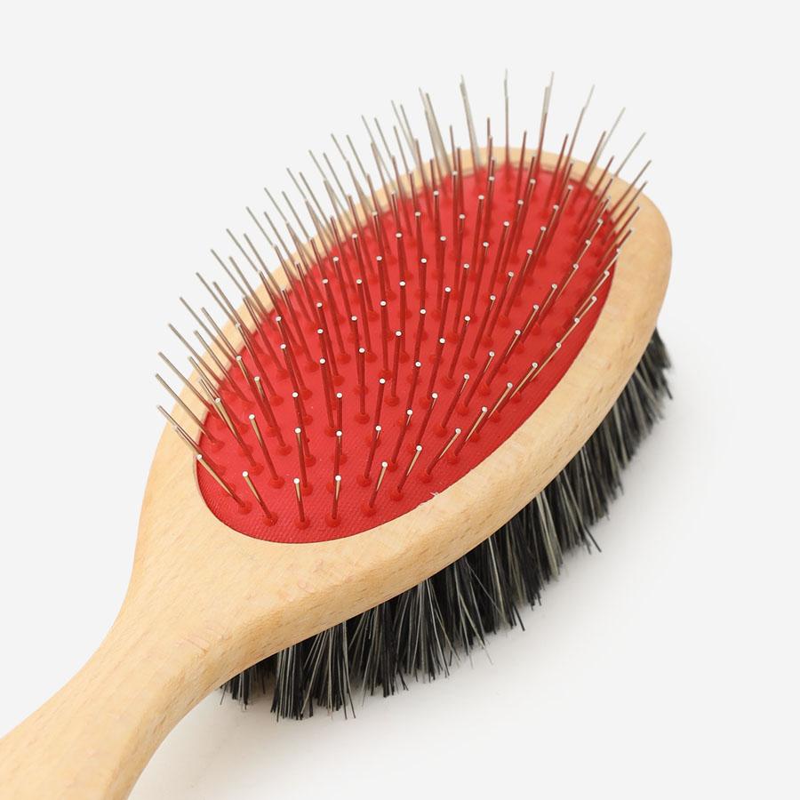 ぬくもりのあるブナ材とメタルピン、豚毛とタンピコ(植物繊維)で作られたブラシ。