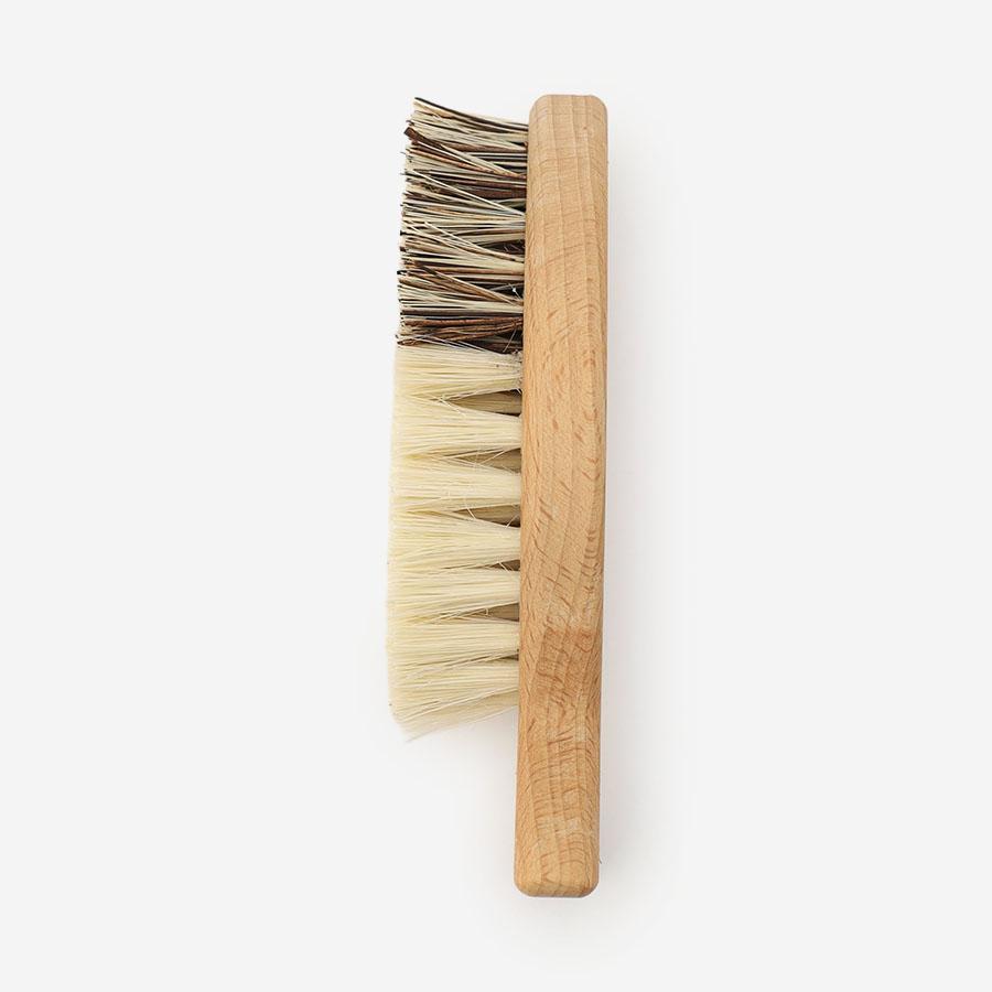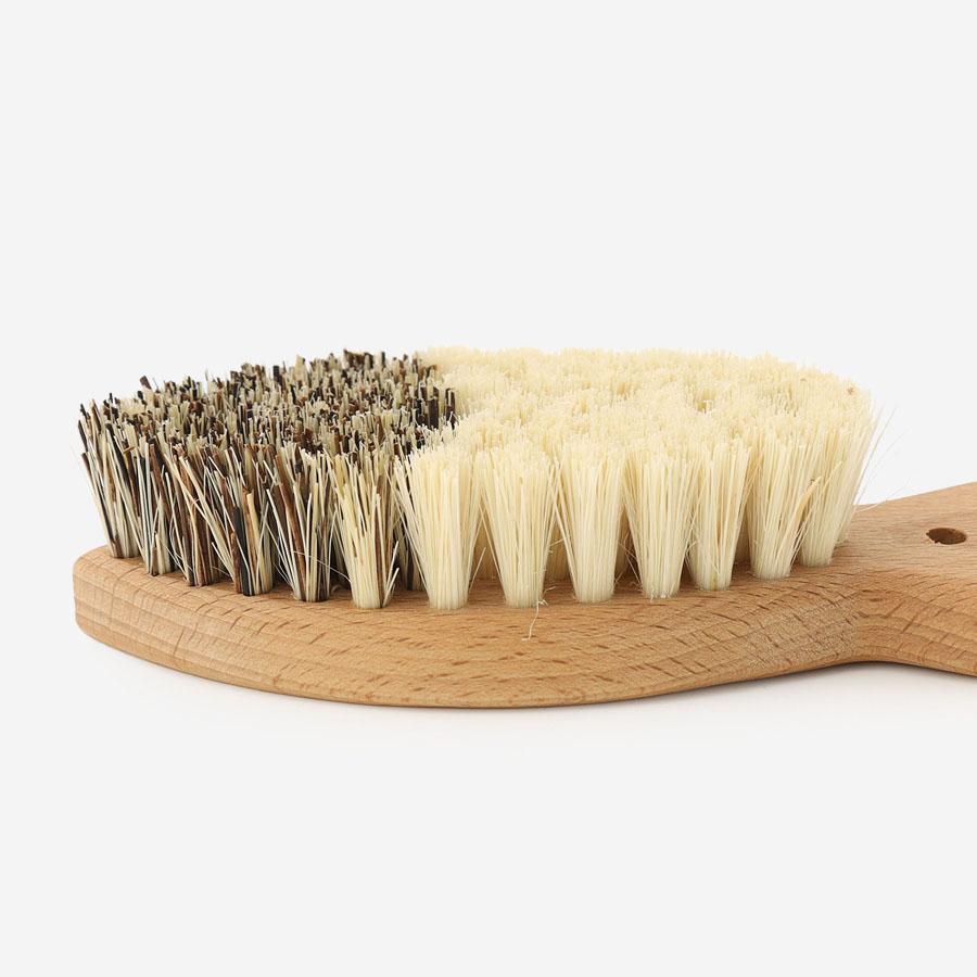天然木の温もりと、硬さの異なる2種類のブラシを備えた実用性の高さが魅力です。しっかり泥を落としたい根菜から薄皮の野菜まで、これひとつで対応。