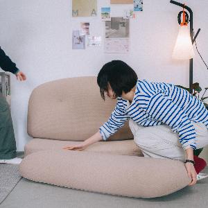 一人暮らしや二人暮らしに最適なコンパクトサイズでありながら、アームや脚がなく、二人でもゆったりと座れる幅を持たせました 。