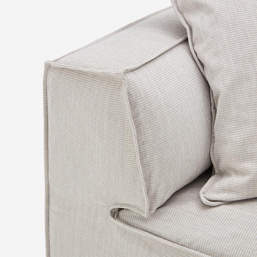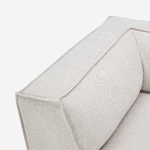 いざ座ってみるとお尻や背中を包み込むように柔らかくフィットします。最初はもっちりした感触で、そこからフワッと包み込まれるような包容力があり、体重をかけると、ほどよい弾力で体を支えてくれます。体が沈み込みず、立ち上がりも簡単。ボリュームがありますが、すっきりとした直線が美しいソファです。ラフ過ぎない雰囲気なので、お部屋にきちんと感を出したい人にもおすすめです。