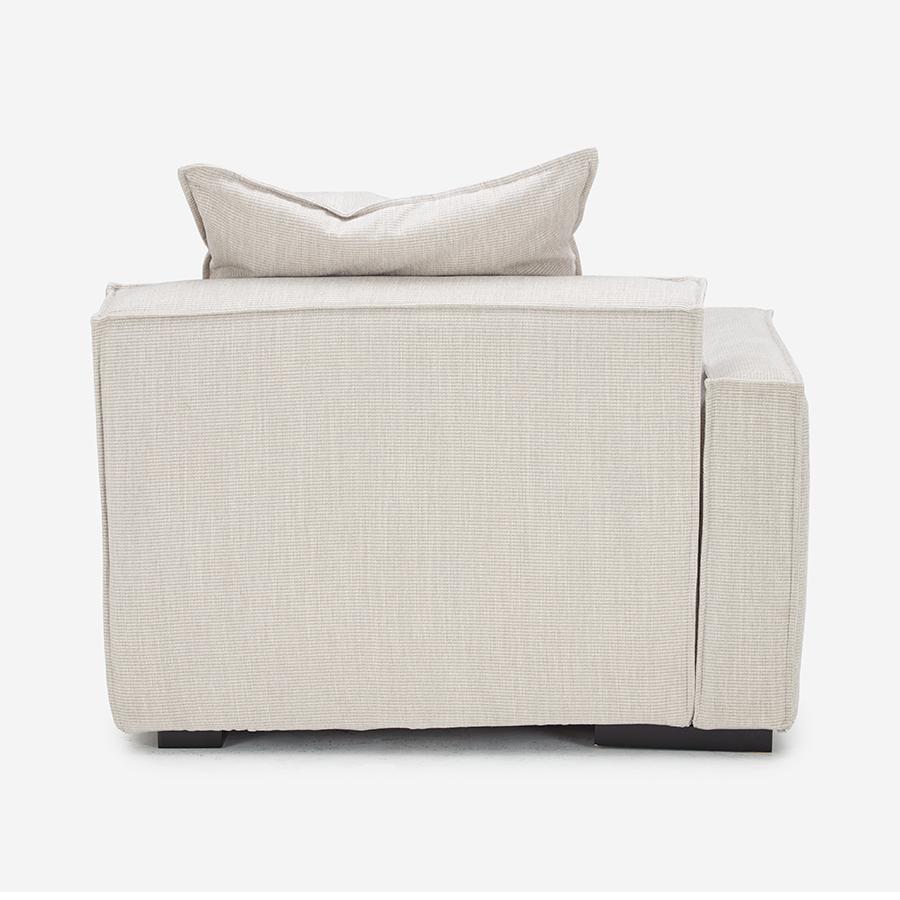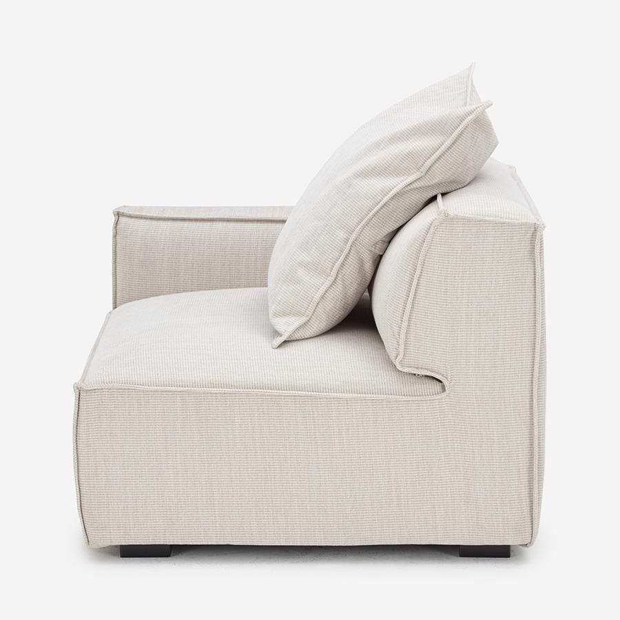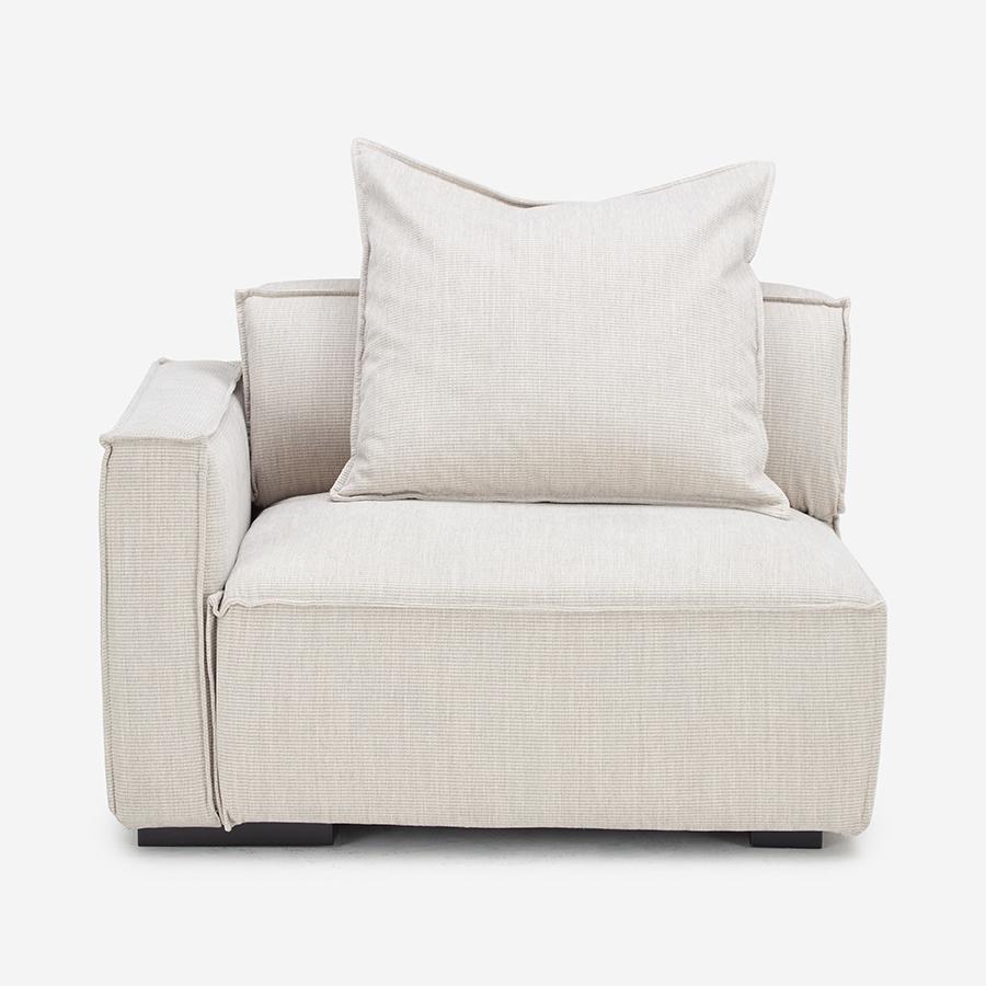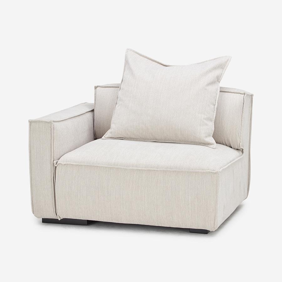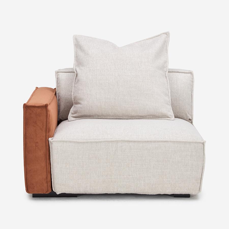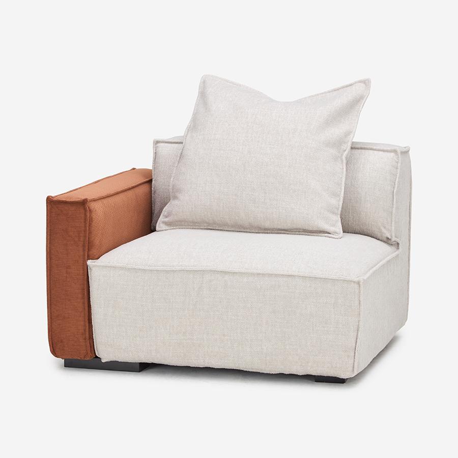 1人掛けソファとアームパーツのセットです。アームパーツは組立の際に左右どちら側にも設置できます。