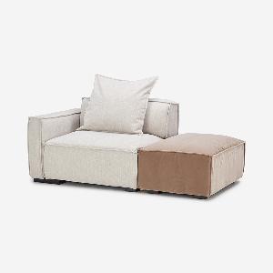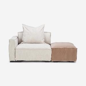 1人掛けにオットマンを組み合わせ、脚を伸ばして、よりリラックスできるスタイルに。オットマンは単体でも使いやすく、来客時には1人掛けから離して、スツールとしてもお使いいただけます。