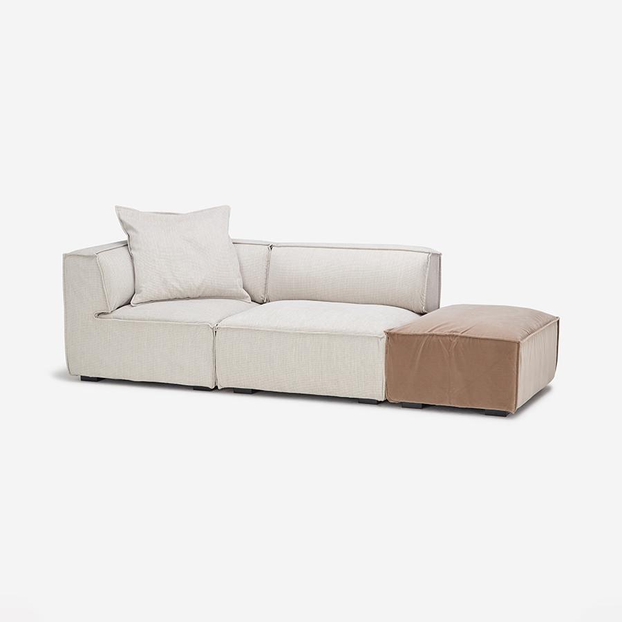 MITONのラインナップは、1人掛けと2人掛け、ビッグオットマン、オットマンの計4アイテムです。各アイテムは組み合わせやすいサイズ展開ですので、写真のように1人掛けをつなげて2人掛けにすることはもちろん、1人掛けにオットマンを組み合わせてリクライナーにしたり、1人掛けにビッグオットマンを合せて、カウチスタイルにしたり……。引っ越しや結婚など、ライフスタイルの変化に合わせ、形を変えて使い続けることができます。