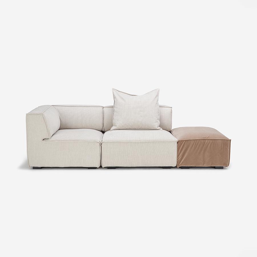 リビングでのソファの配置は、テレビや窓、壁の位置に影響を受けやすく、制限があるなかで選ぶことが多いですよね。MITONの1人掛け、2人掛けにはアームがありませんので横からも座りやすく、オットマンは背もたれもないことから、全方向からアクセスが可能。