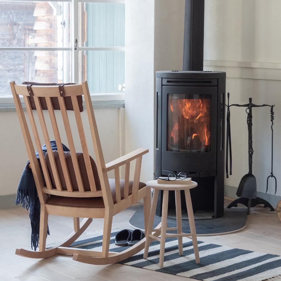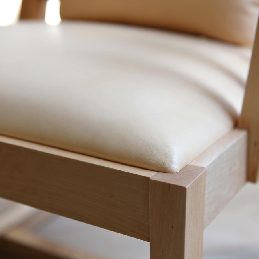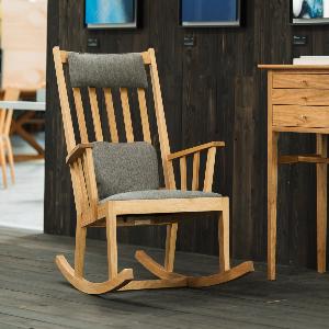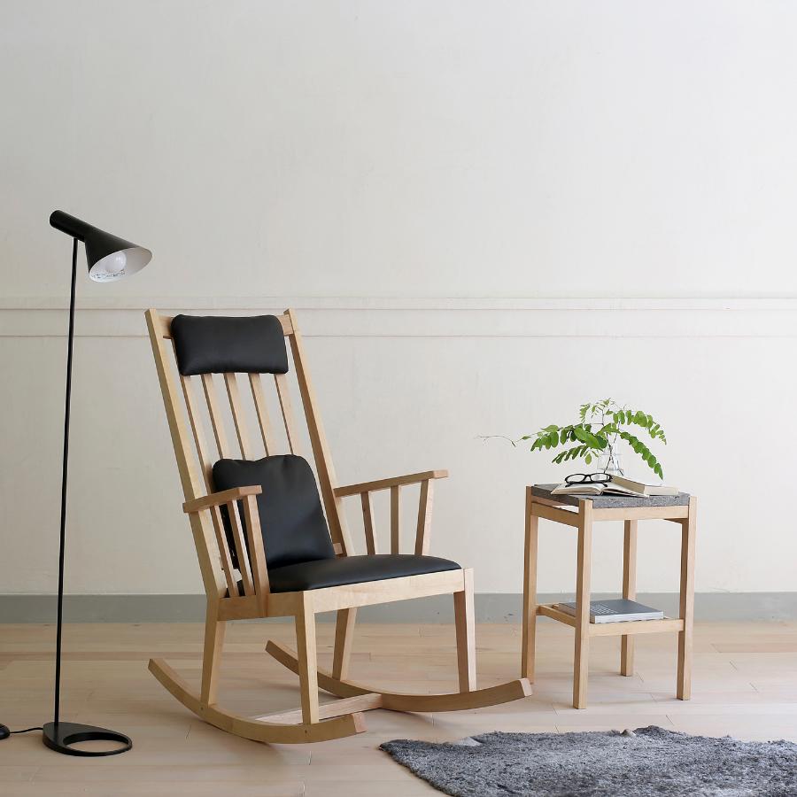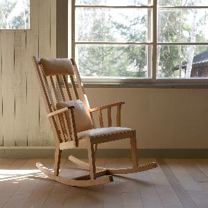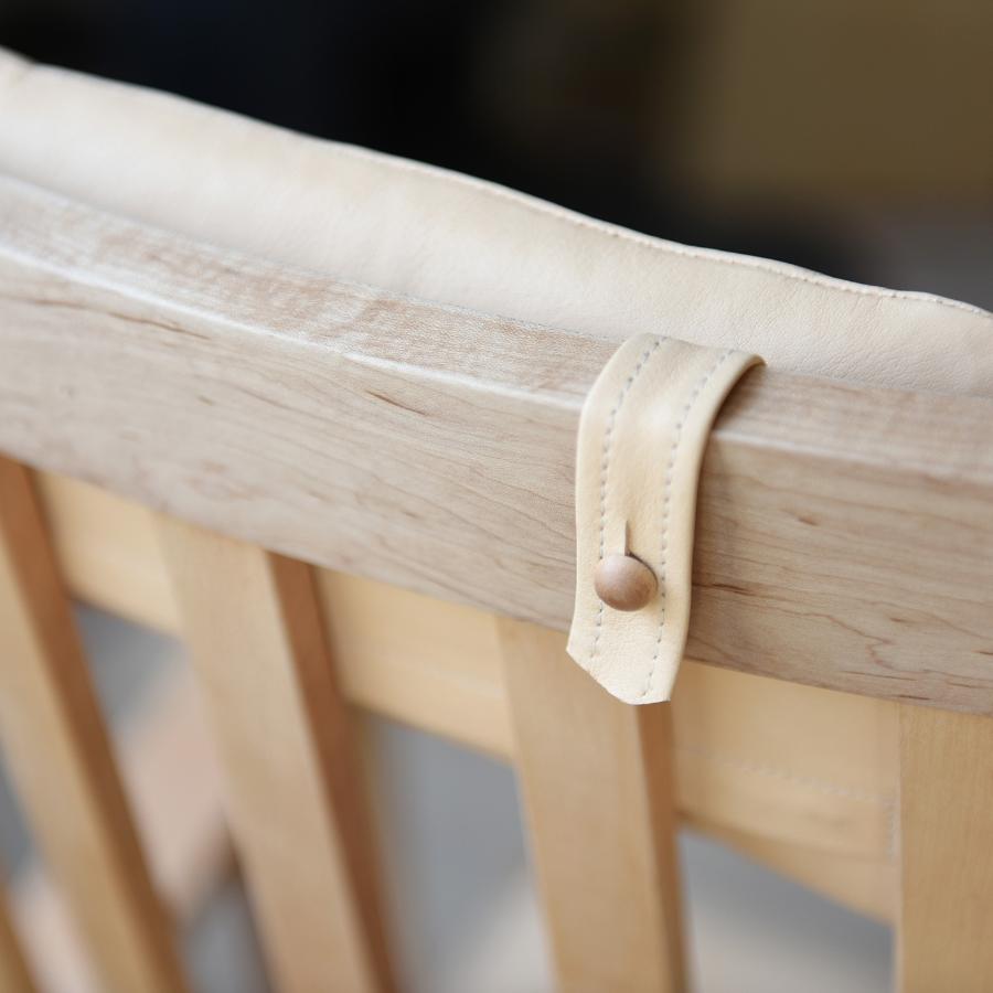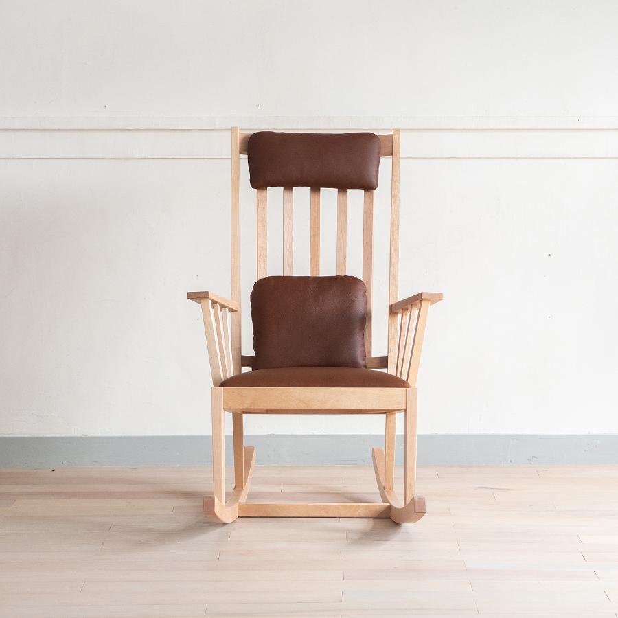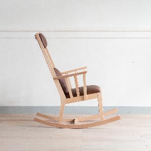 北海道産の無垢材を使い丁寧に作り上げたロッキングチェア。ヘッドレストを固定する細かなパーツにも無垢材を使っています。