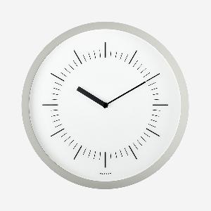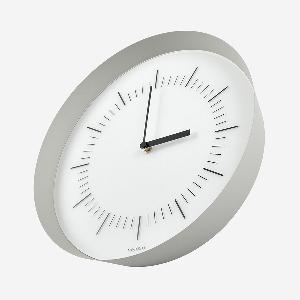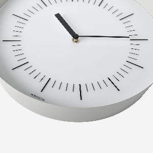 必要最小限のパーツだけで構成するウォールクロックながら、「フレームの薄さ」「広がりのある角度」「奥行きの深さ」で時計としてのボリュー ム感を持たせ、全体のバランスをとりました。