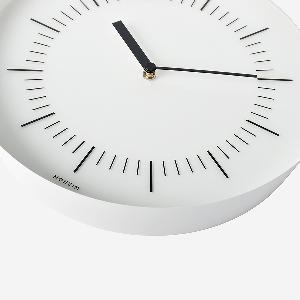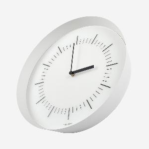 必要最小限のパーツだけで構成するウォールクロックながら、「フレームの薄さ」「広がりのある角度」「奥行きの深さ」で時計としてのボリュー ム感を持たせ、全体のバランスをとりました。
