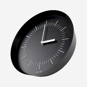 必要最小限のパーツだけで構成するウォールクロックながら、「フレームの薄さ」「広がりのある角度」「奥行きの深さ」で時計としてのボリュー ム感を持たせ、全体のバランスをとりました。