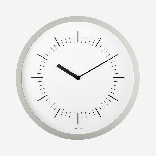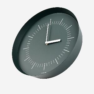 必要最小限のパーツだけで構成するウォールクロックながら、「フレームの薄さ」「広がりのある角度」「奥行きの深さ」で時計としてのボリュー ム感を持たせ、全体のバランスをとりました。