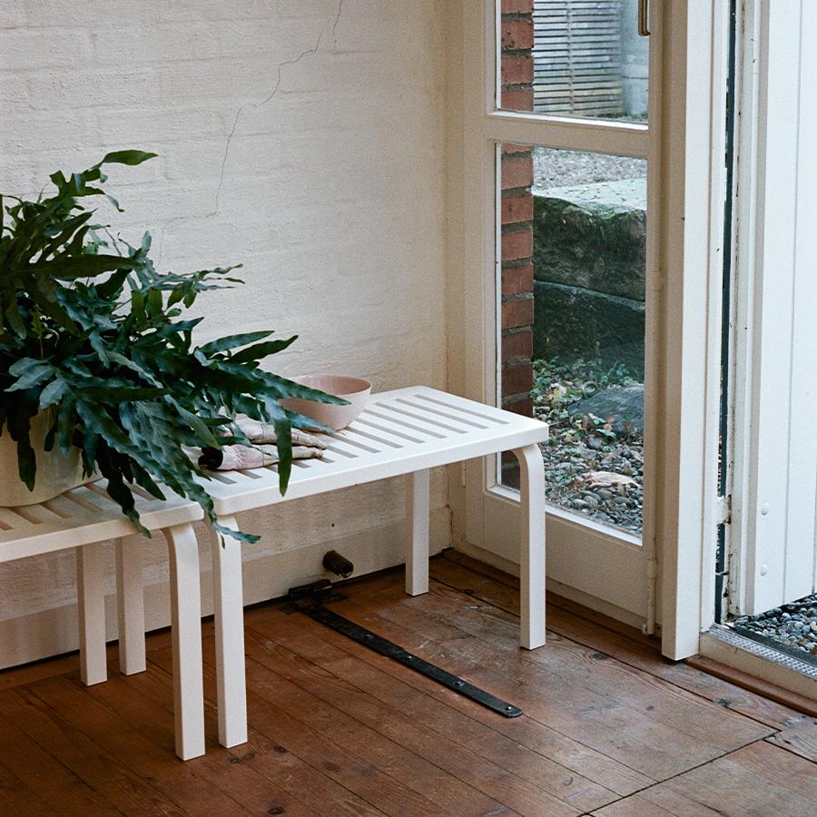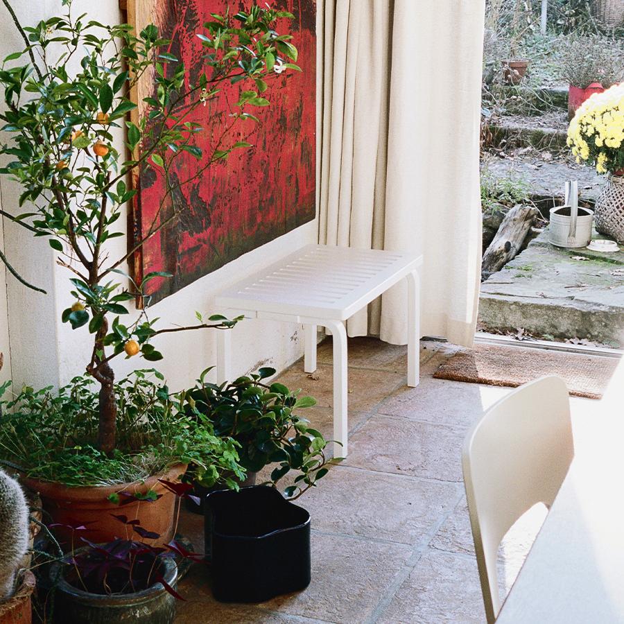 1945年にデザインされた「153B ベンチ」は、アルヴァ・アアルトによる「L-レッグ」シリーズの中でも後期の名作であり、「スツール 60」など初期の製品とも自然に馴染み、愛され続けています。
