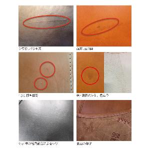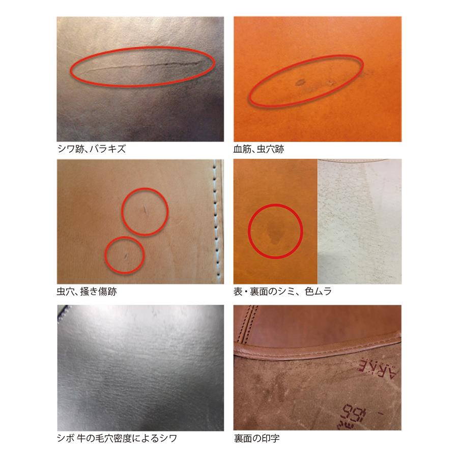 革本来の表情、個性としてお楽しみいただき、ご購入時にご理解いただけますようお願い申しあげます。