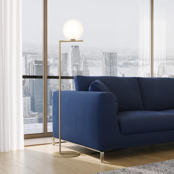 床の上に配置できるフロアランプは扱いやすく、サイズの大きさから照度が高いモデルも多いです。シェード型やアーム型などデザインの種類も豊富です。