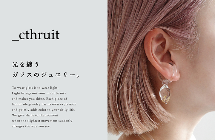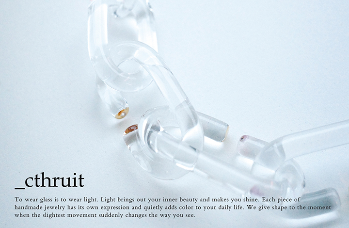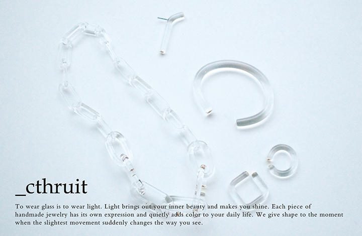 アクタス・青山店では、デザイナー梅田香奈氏が手がけるガラスジュエリーブランド「_cthruit(シースルーイット)」のポップアップを開催いたします。